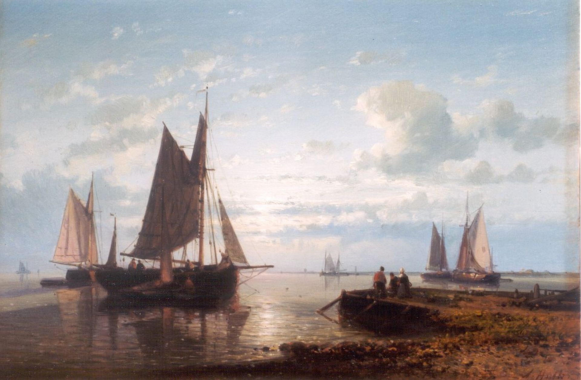 Abraham Hulk | Laverende platbodems, olieverf op paneel, 21,5 x 32,3 cm, gesigneerd l.o. en gedateerd 1849