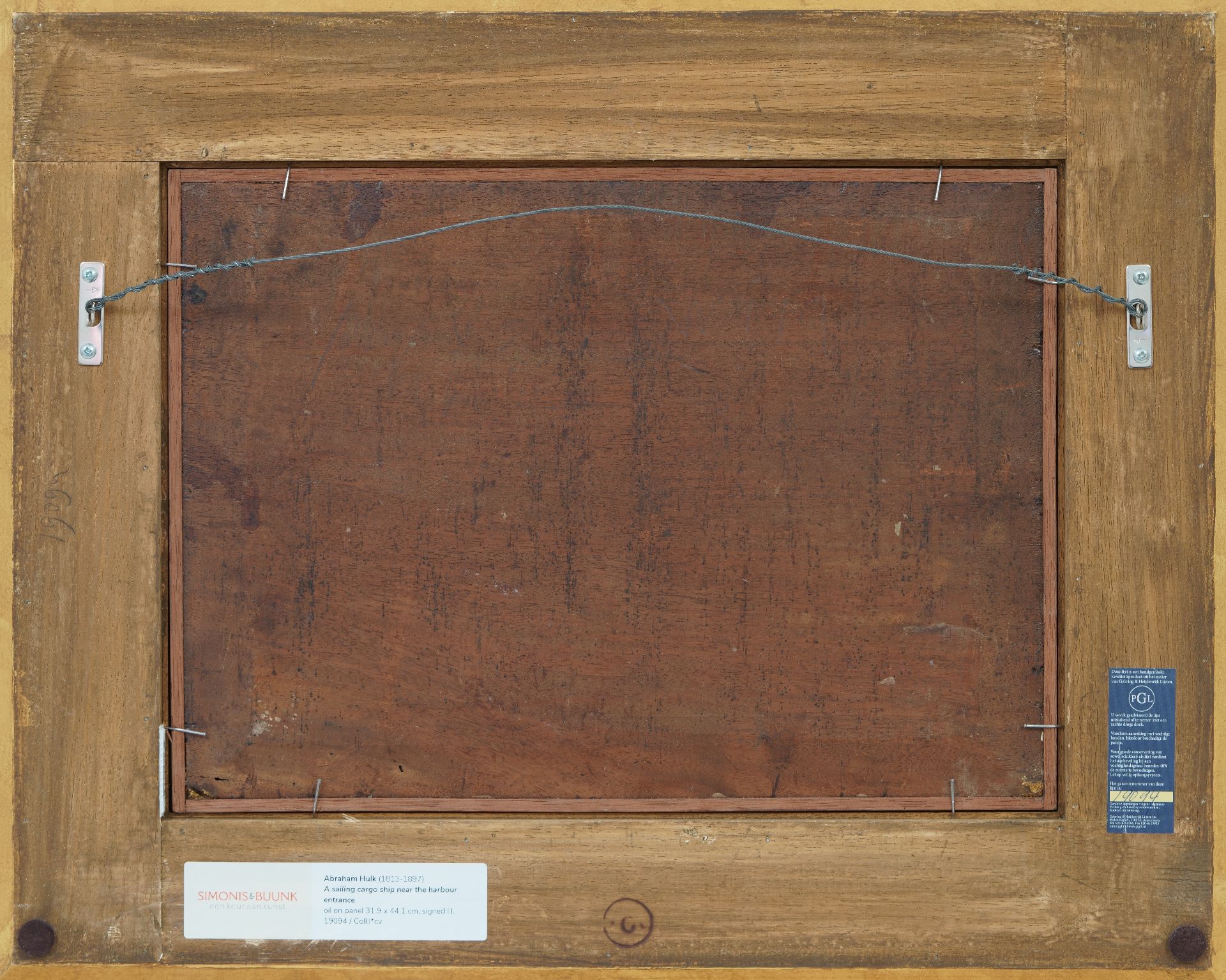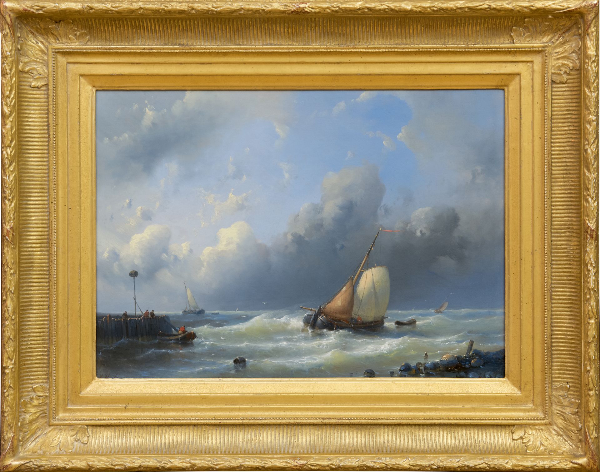Abraham Hulk | Zeilschepen voor een haveningang, olieverf op paneel, 44,5 x 62,7 cm, gesigneerd r.o. en gedateerd 1846