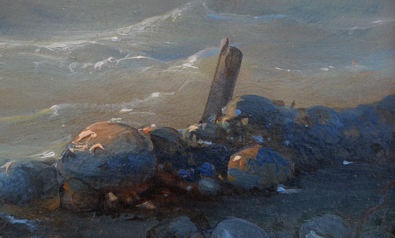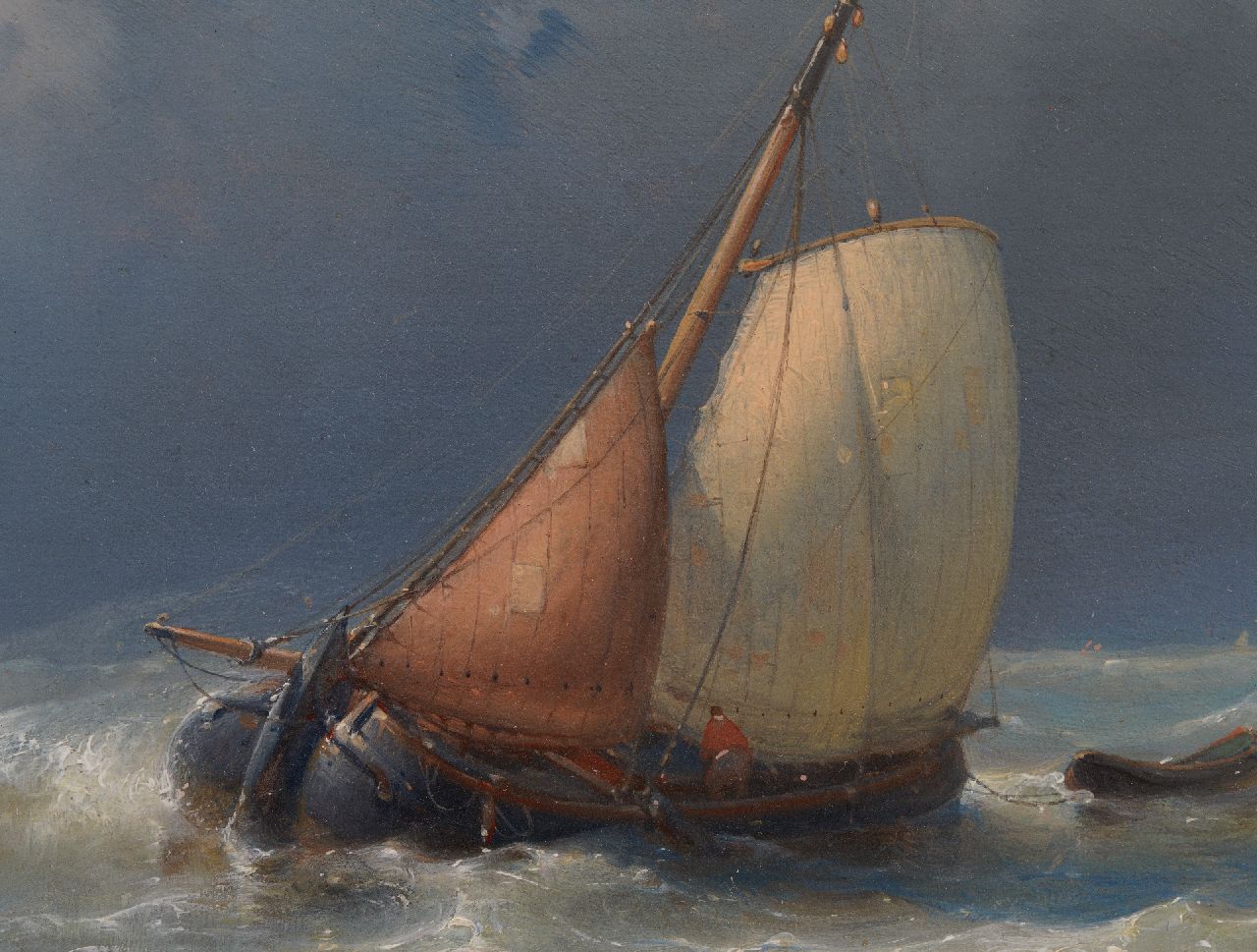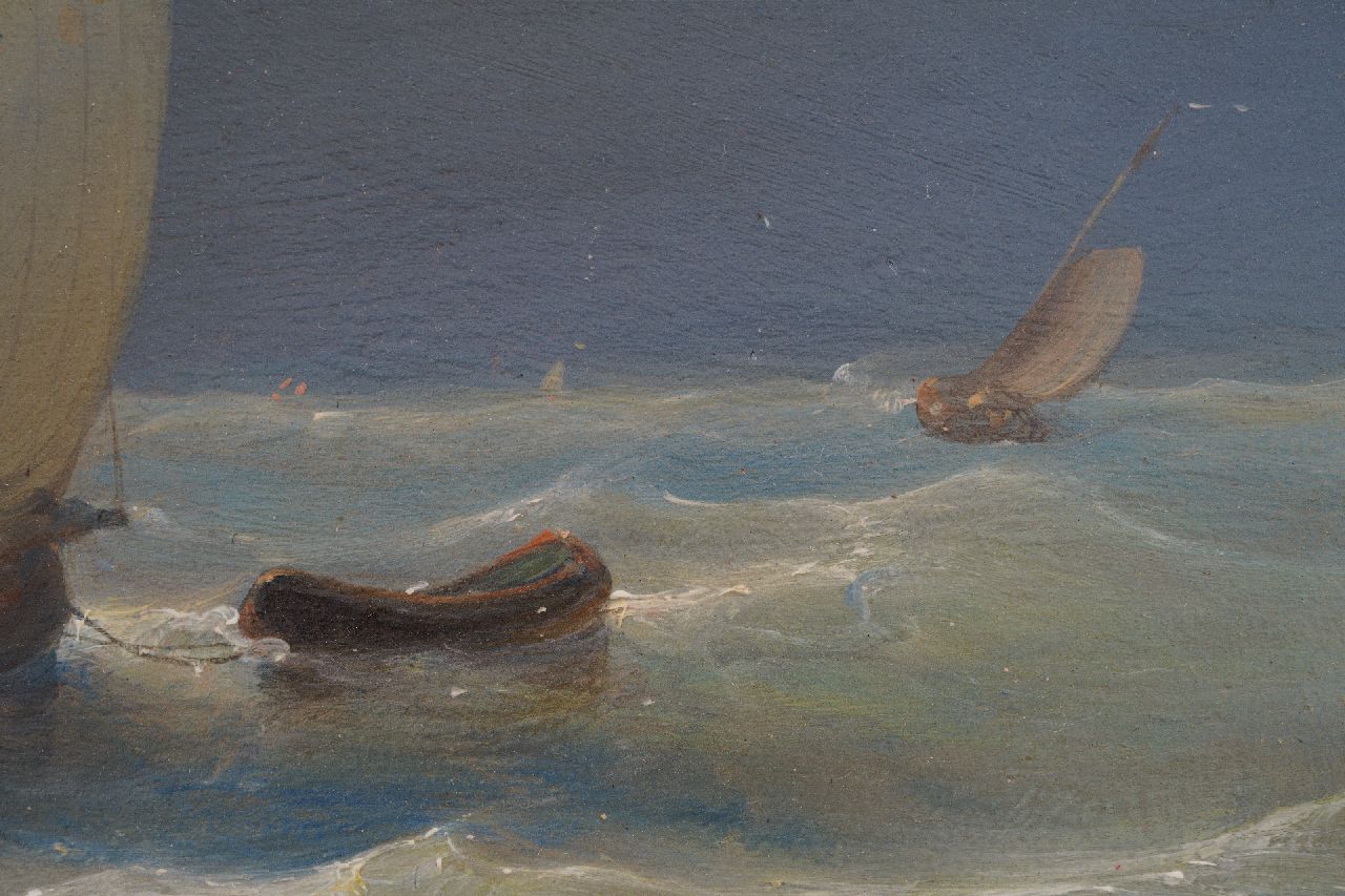 Abraham Hulk | Laverende platbodems, olieverf op paneel, 21,5 x 32,3 cm, gesigneerd l.o. en gedateerd 1849