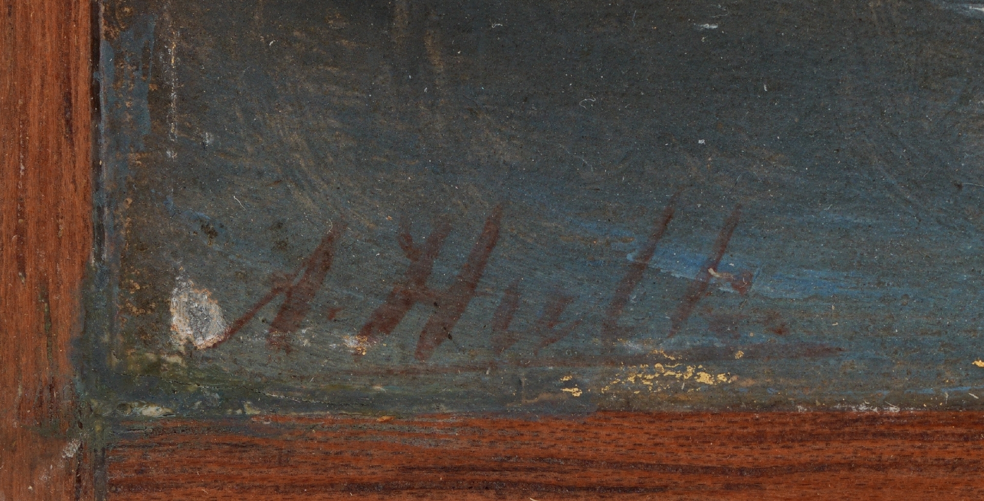 olieverf op paneel 31,9 x 44,1 cm, gesigneerd linksonder