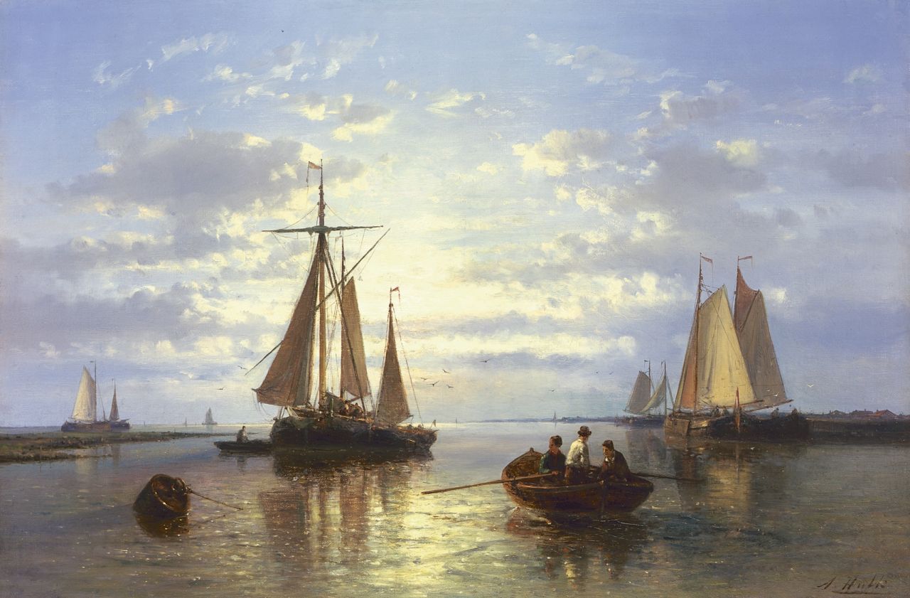 Abraham Hulk kunstwerk • schilderij • voorheen te koop Riviergezicht met schepen op kalm water