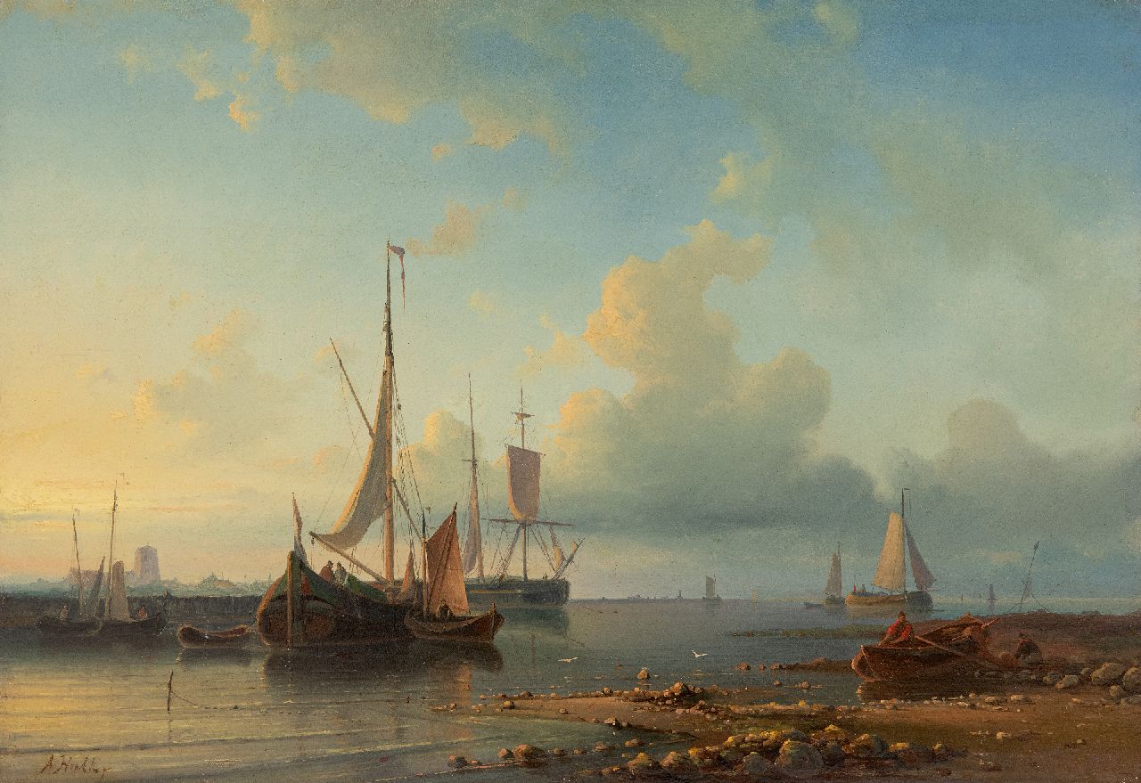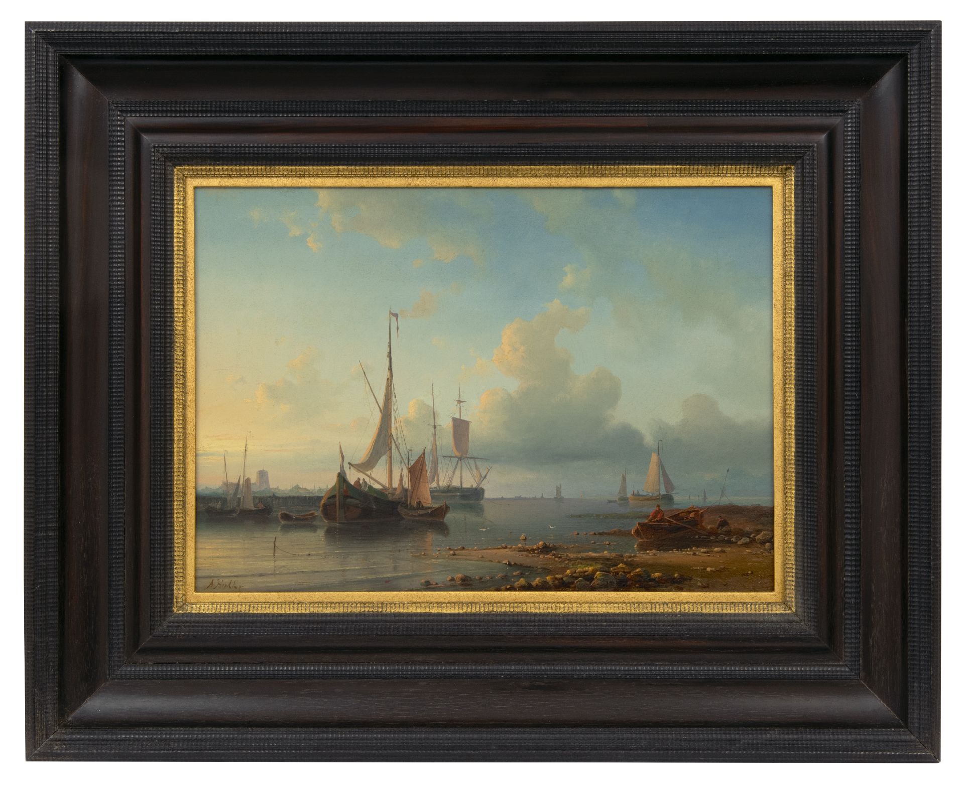 Abraham Hulk kunstwerk • schilderij • voorheen te koop Schepen voor anker op kalm water