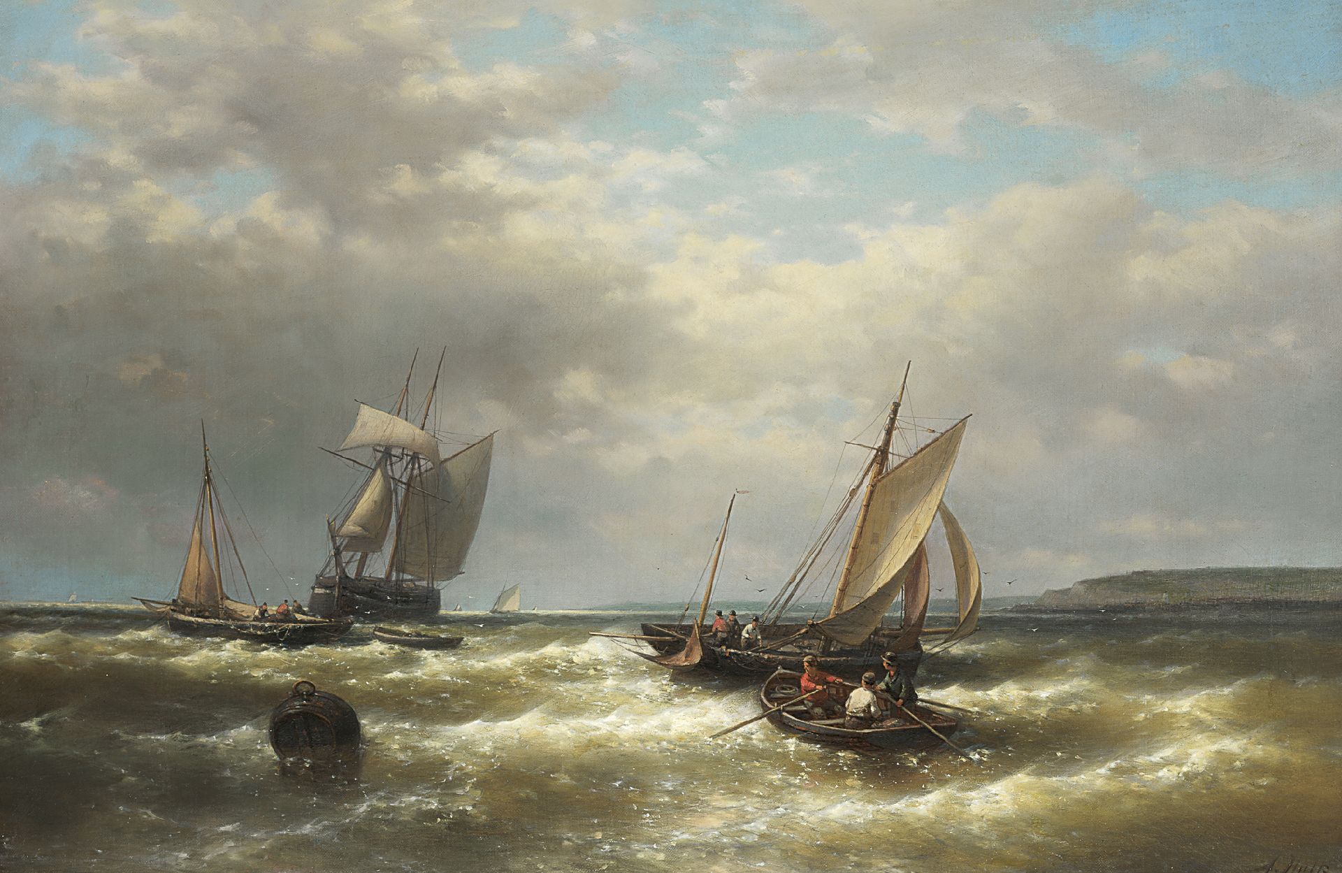 Abraham Hulk kunstwerk • schilderij • te koop Schepen voor de kust bij stormachtig weer