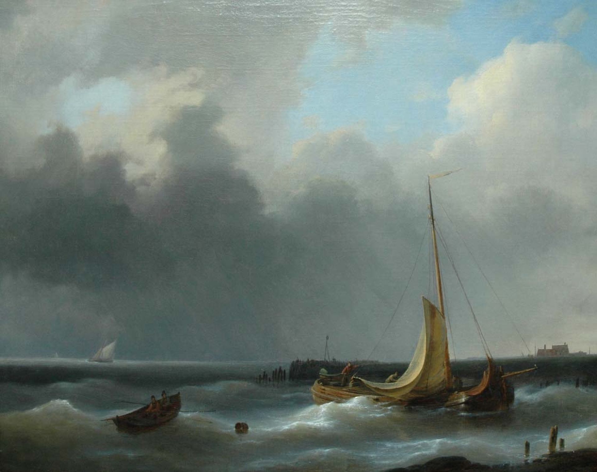 Abraham Hulk kunstwerk • schilderij • voorheen te koop Terugkeer naar de haven bij stormachtig weer