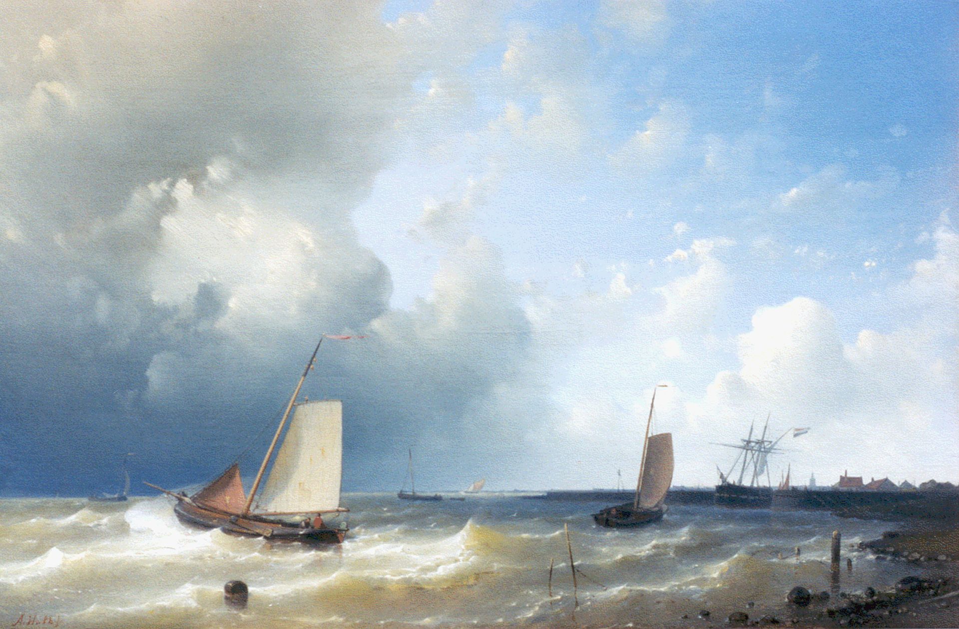 Abraham Hulk kunstwerk • schilderij • voorheen te koop Vissersboten in een stevige bries voor de haven