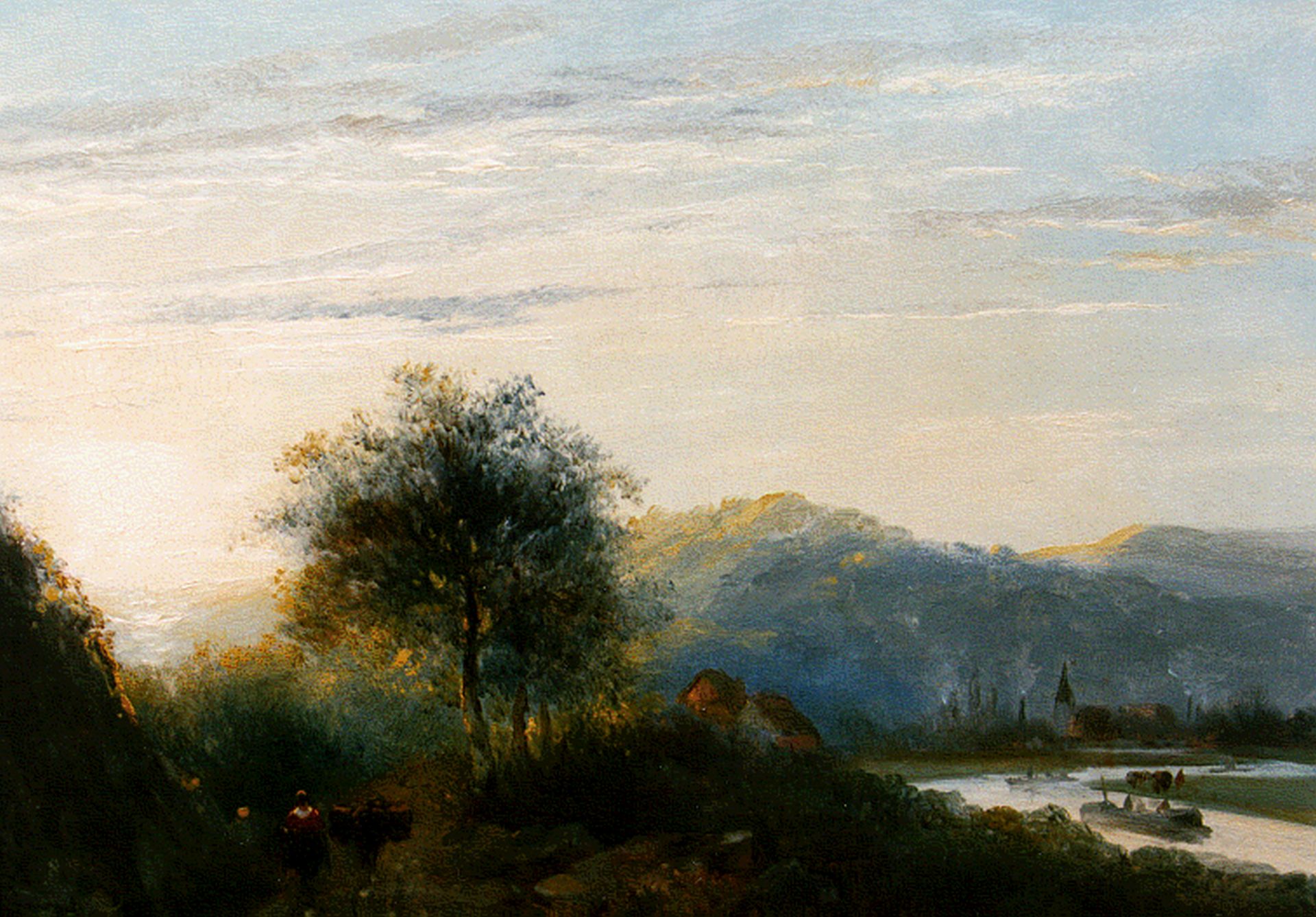 Abraham van der Wayen Pieterszen kunstwerk • schilderij • voorheen te koop Reiziger in een rivierlandschap