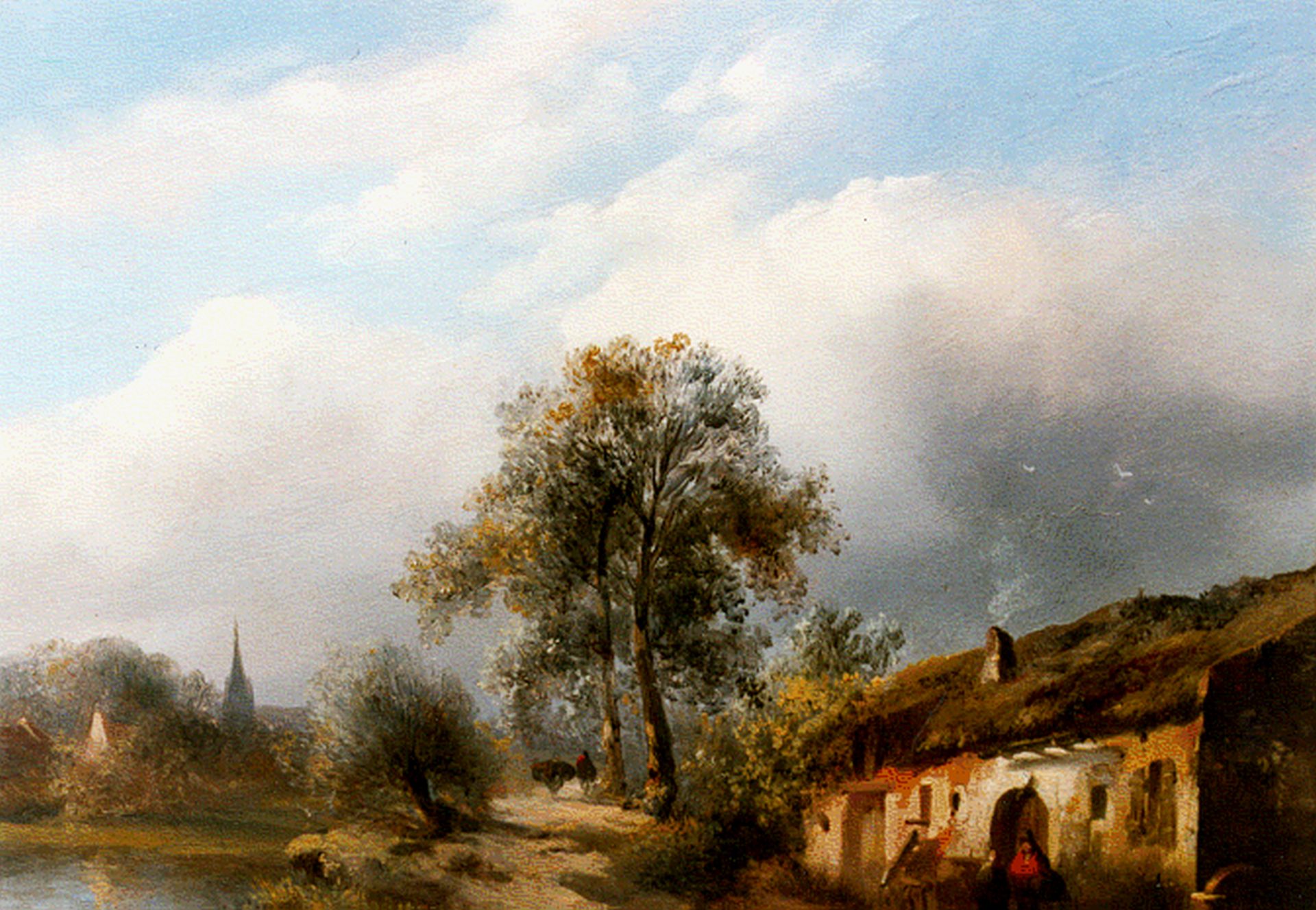 Abraham van der Wayen Pieterszen kunstwerk • schilderij • voorheen te koop Riviergezicht met boerderij en figuren
