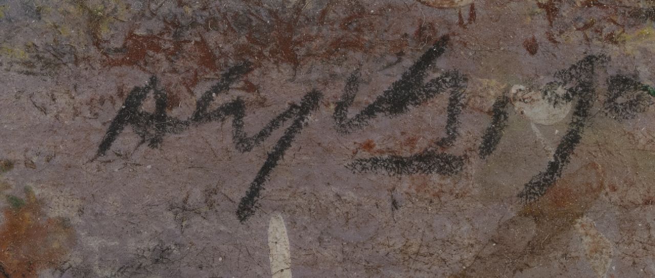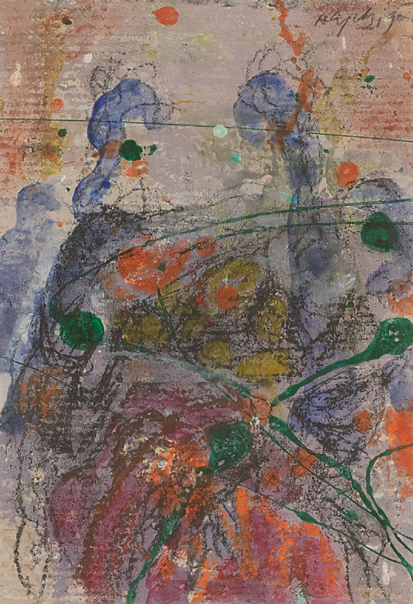 gemengde techniek op papier 10,4 x 14,8 cm, gesigneerd rechtsboven en gedateerd '90