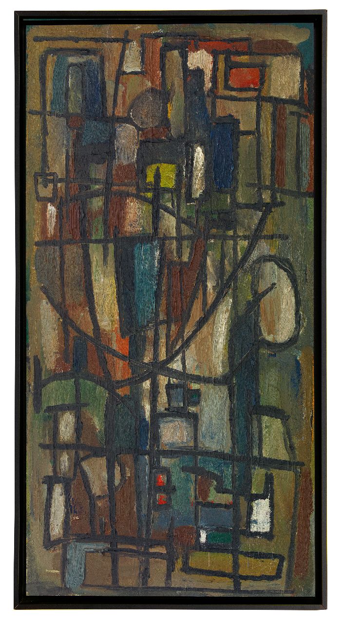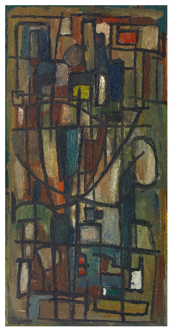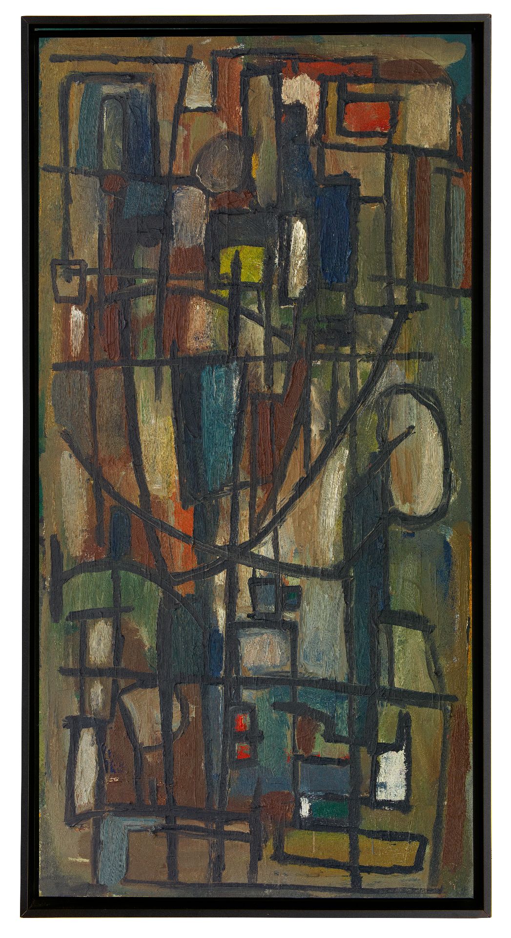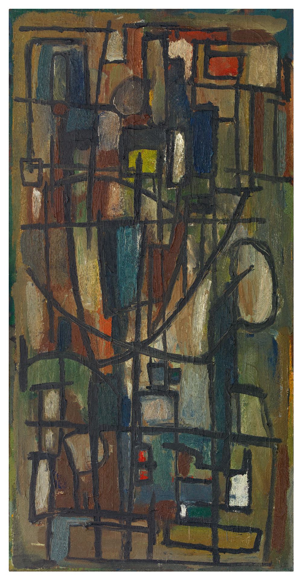 olieverf op board 90,0 x 45,5 cm, gesigneerd rechtsonder en verso gedateerd 1956