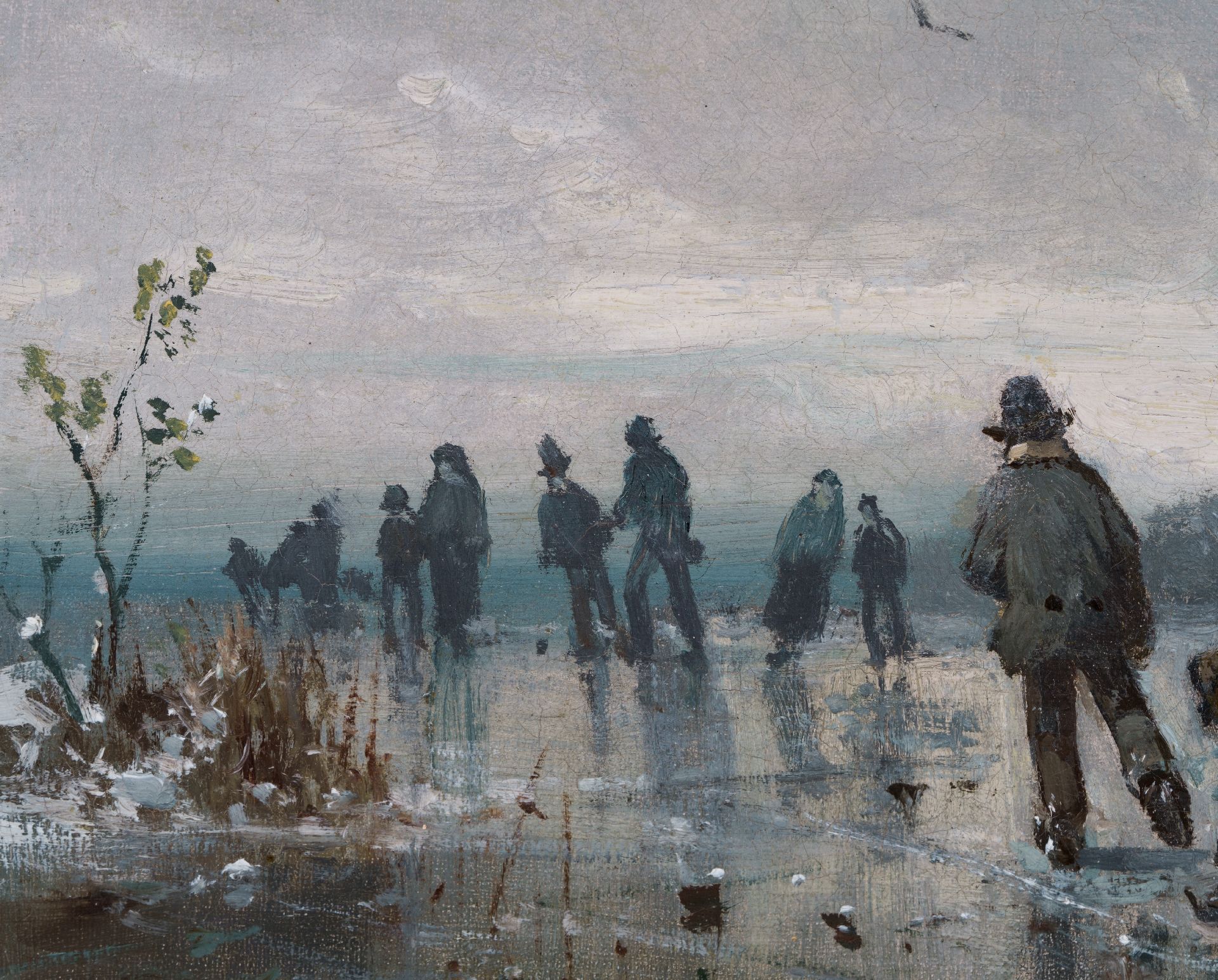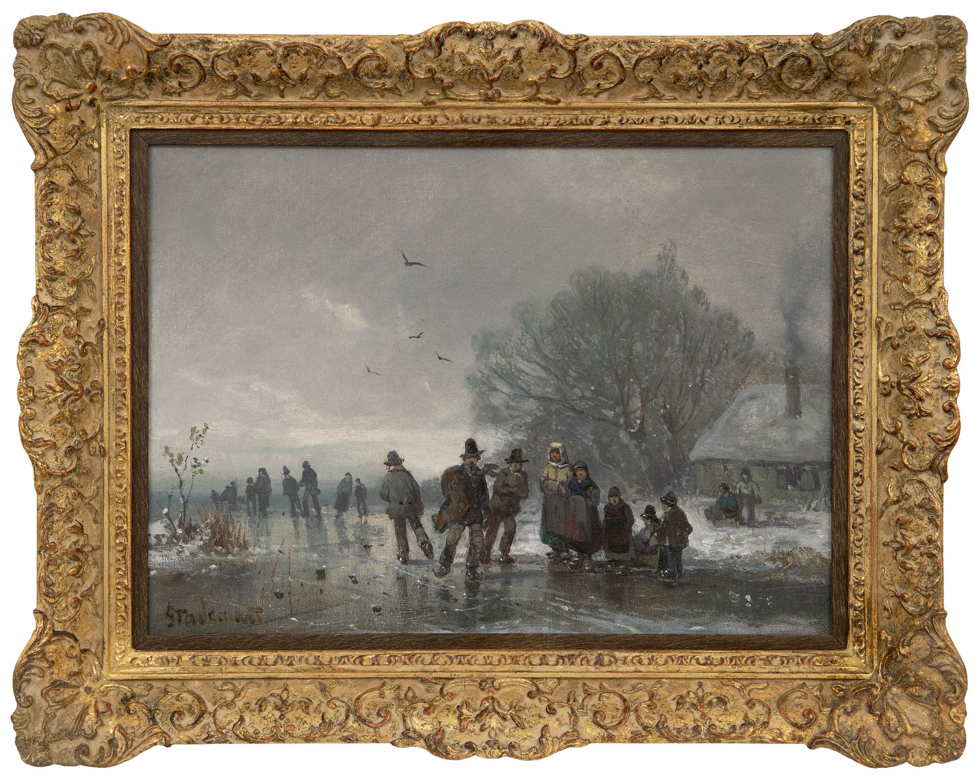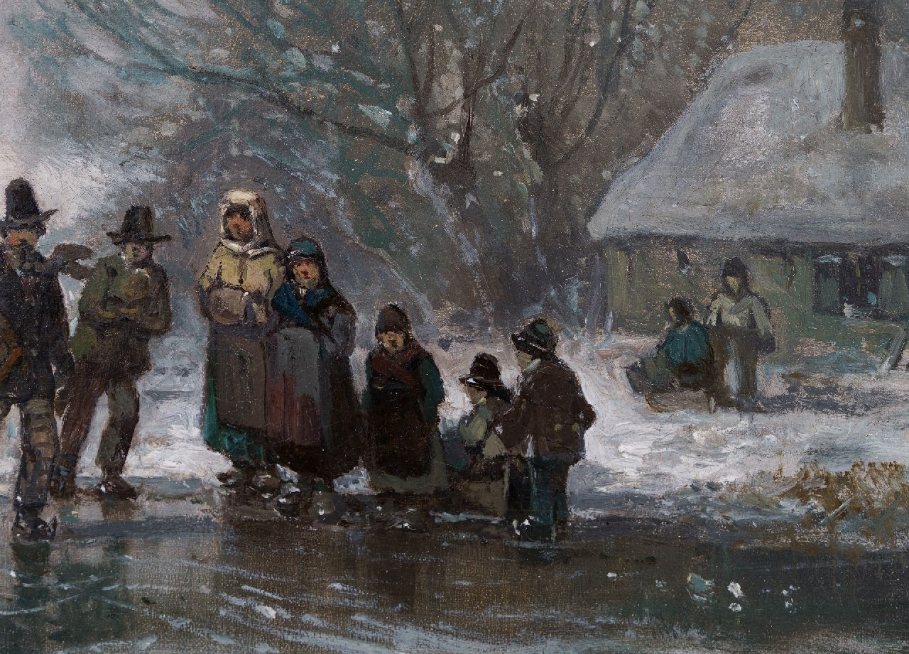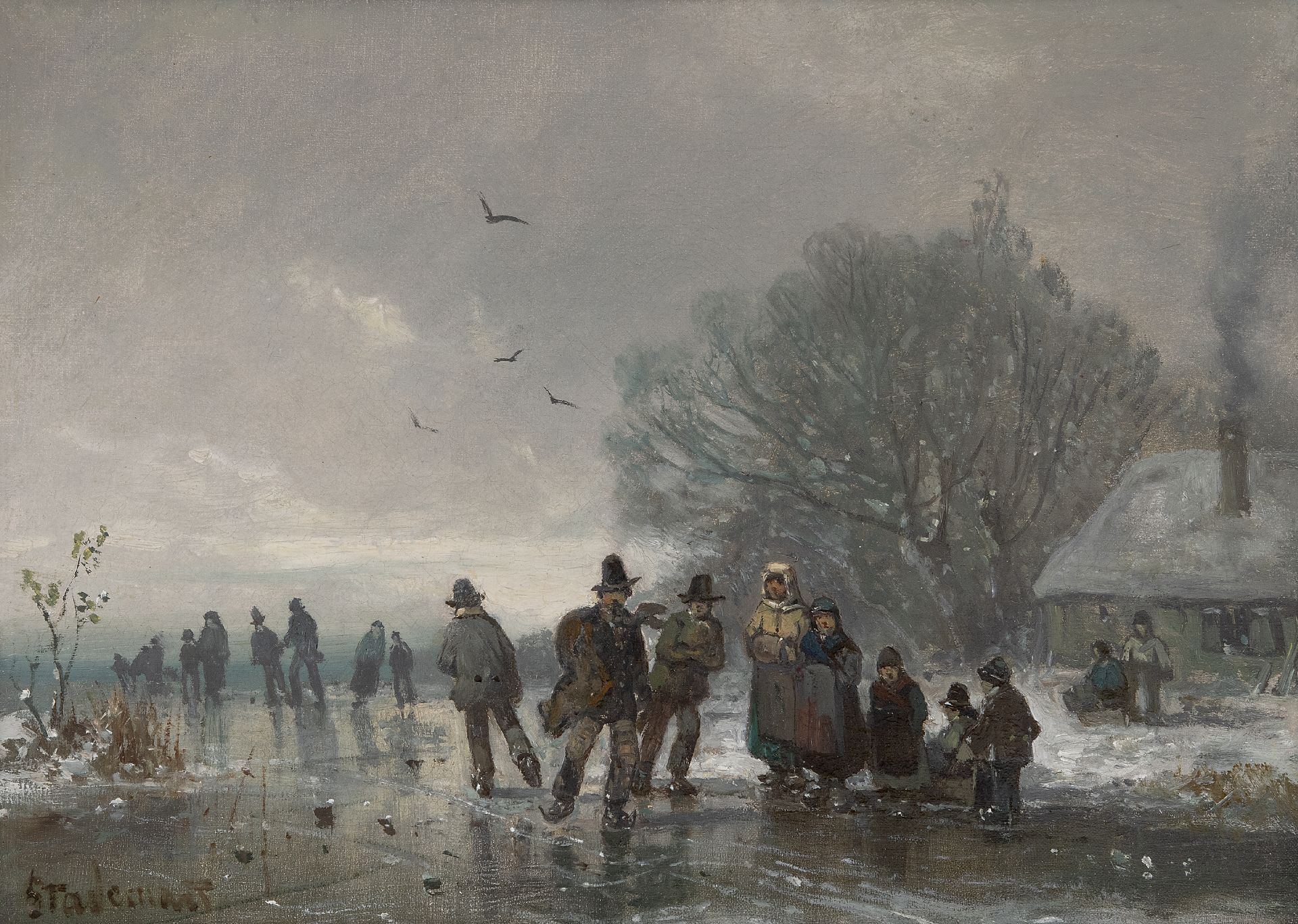 Adolf Stademann kunstwerk • schilderij • te koop IJspret op bevroren waterpartij