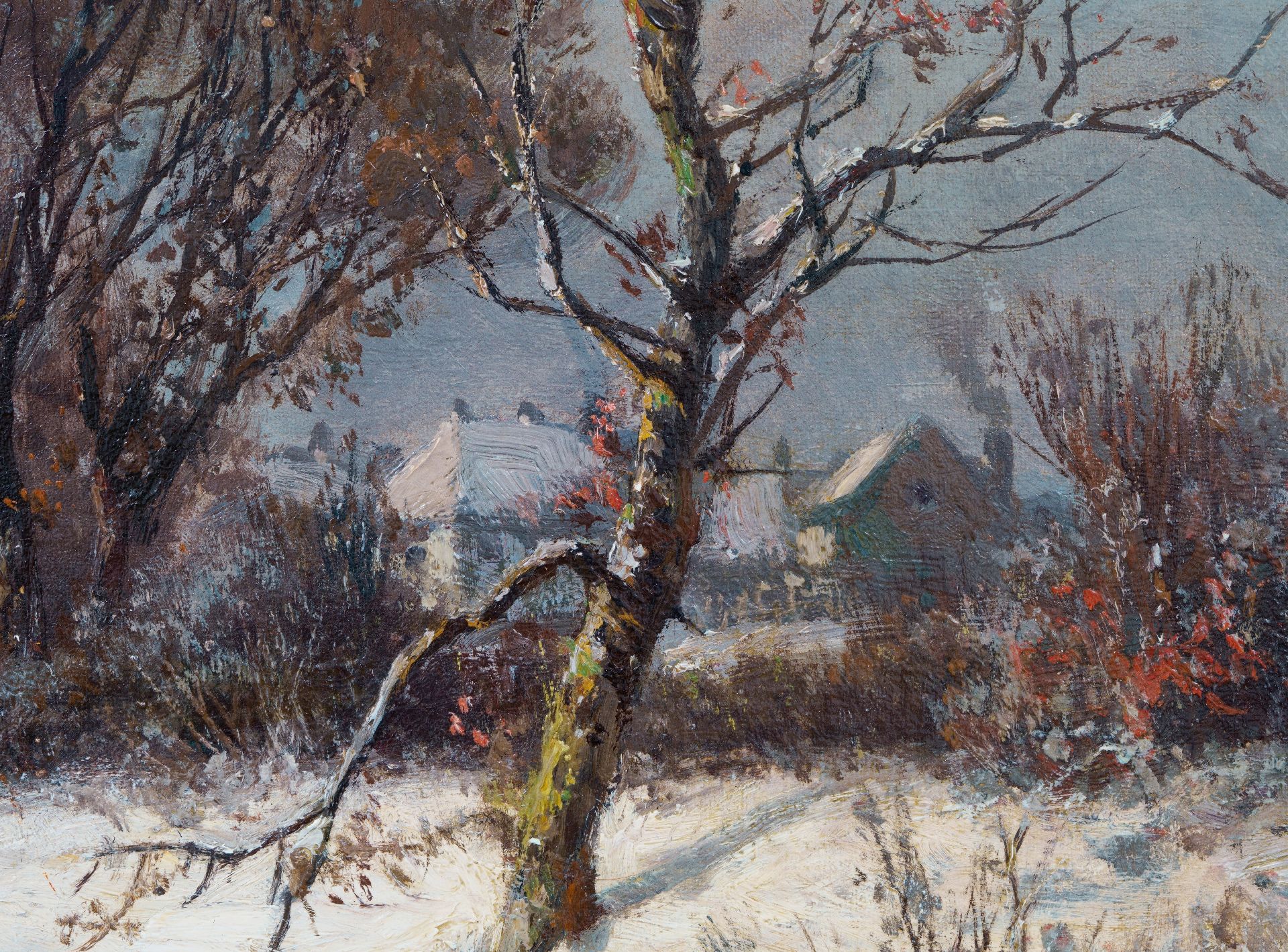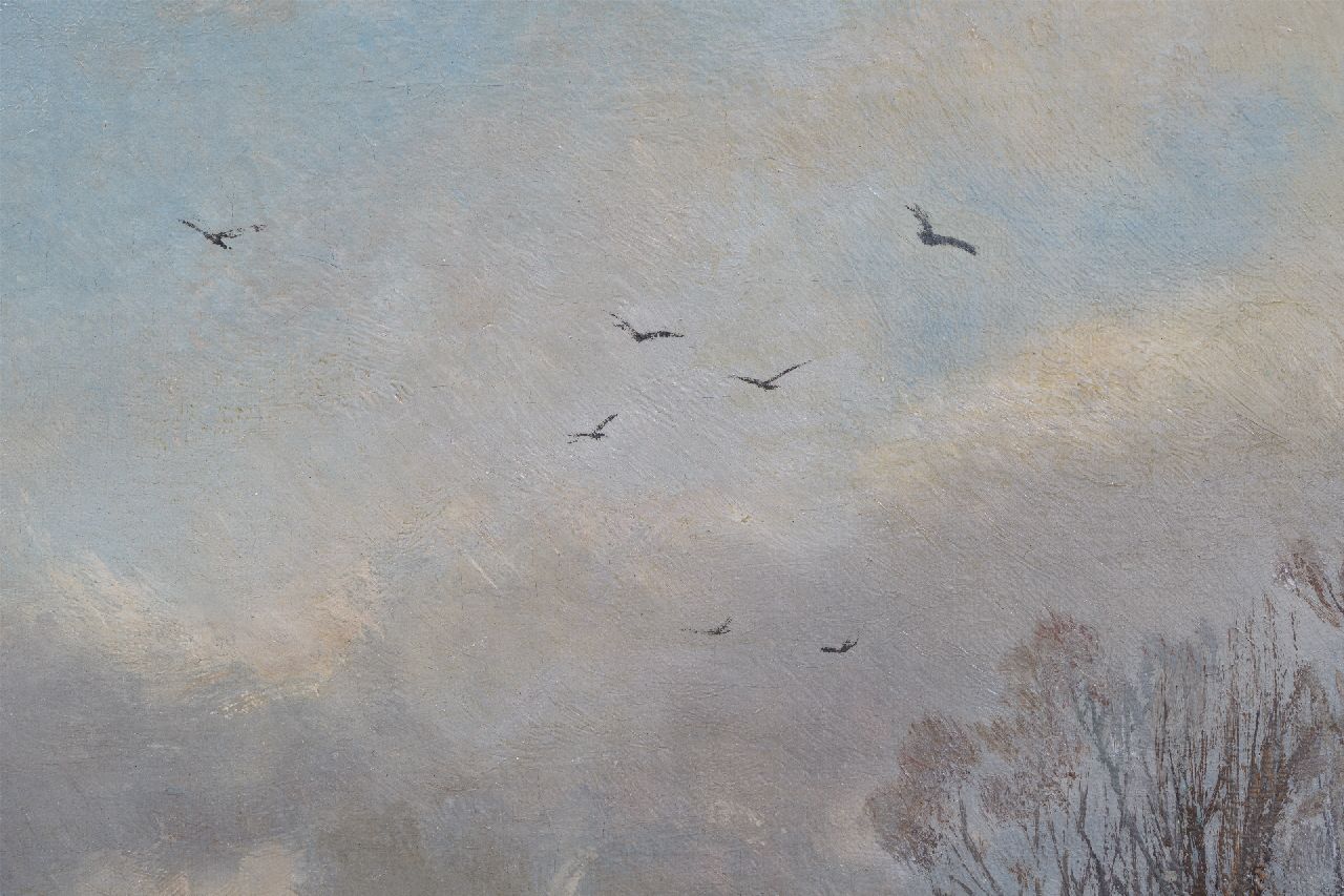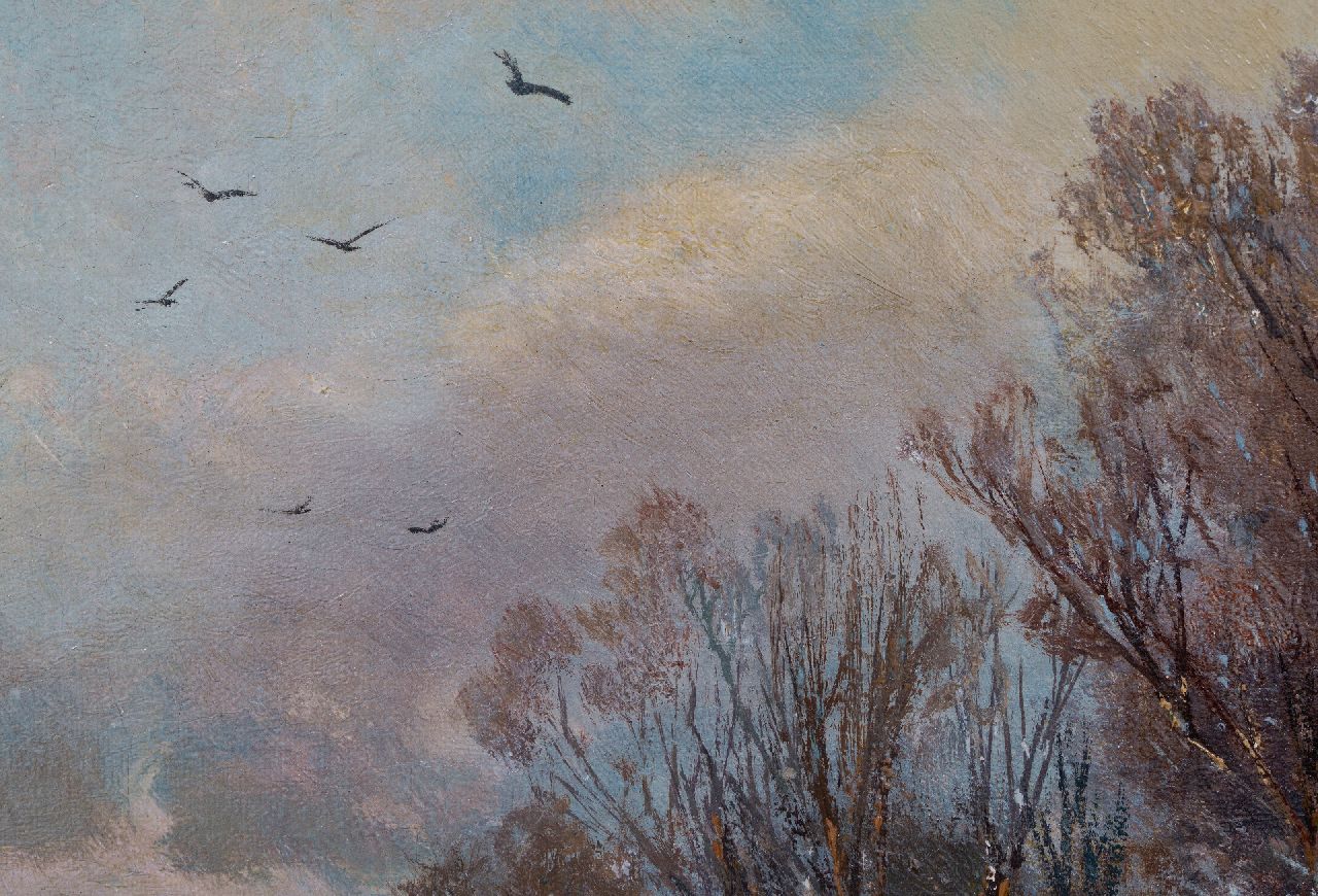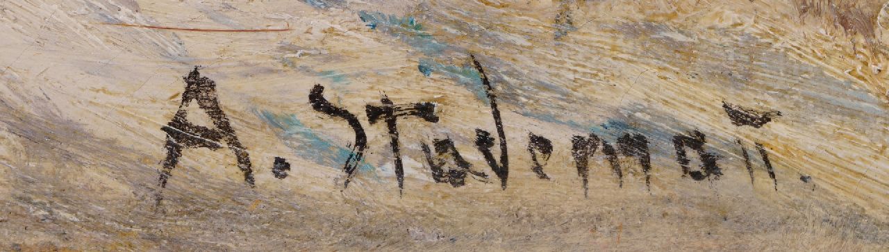 Adolf Stademann kunstwerk • schilderij • te koop Winterlandschap met paard en wagen en spelende kinderen op het ijs