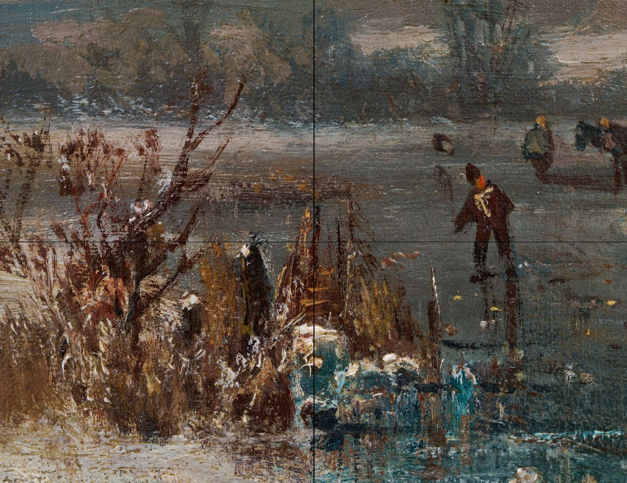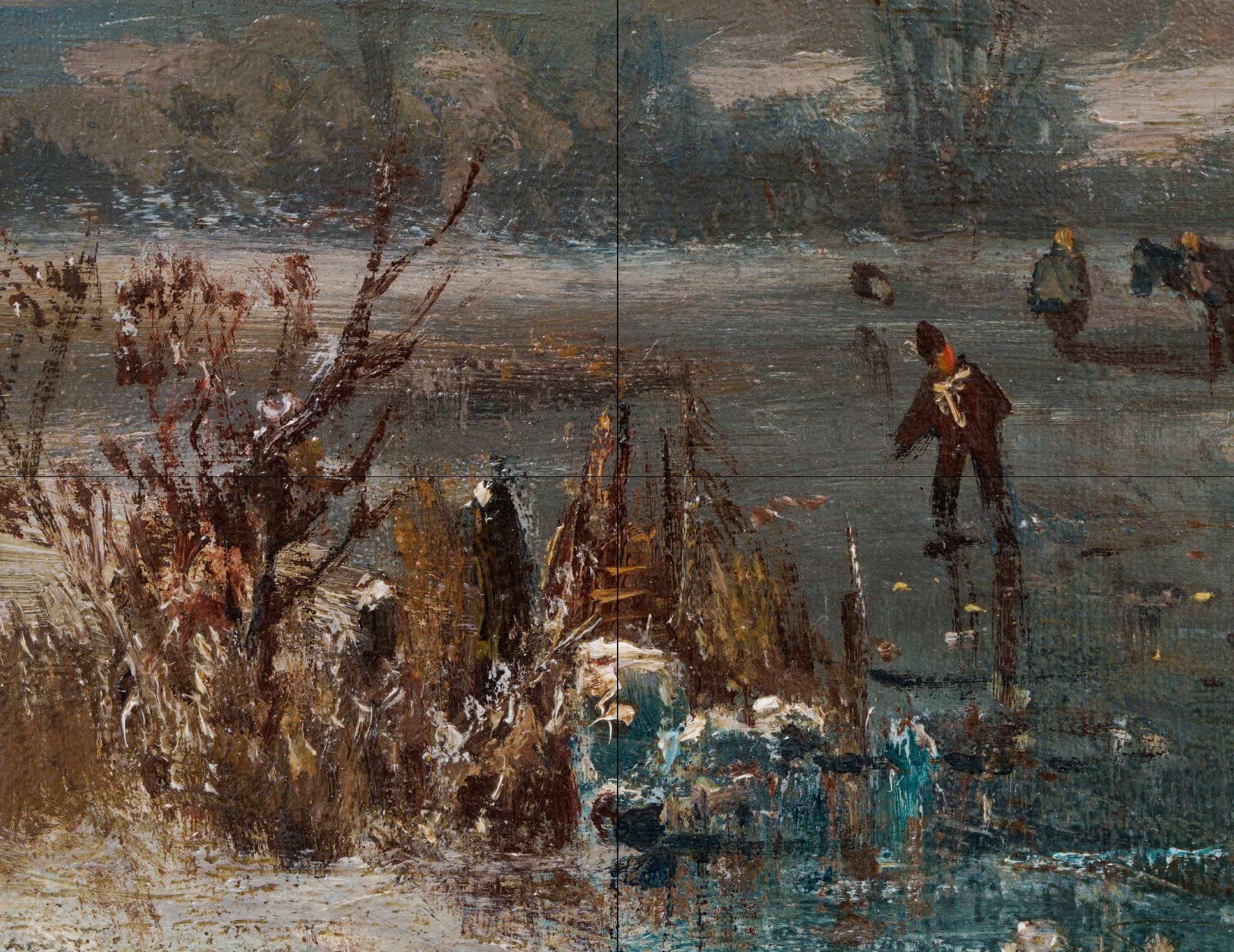 De Duitse kunstenaar Adolf Stademann schilderde voornamelijk landschappen, genretaferelen, soms maanverlicht. Hij woonde en werkte in zijn geboortestad München. In de periode 1860-1890 kwam Stademann een aantal keren naar Nederland. Door Andreas Schelfhout, een van de bekendste vertolkers van het Hollandse ijsgezicht, werd hij geïnspireerd tot het schilderen van Hollands aandoende ijsgezichten. Niet alleen in Nederland, maar ook daarbuiten waren deze schaatstaferelen geliefd om hun oer-Hollandse onderwerp. Daarnaast waren ook de fijne uitwerking en realistische details reden van hun populariteit.
