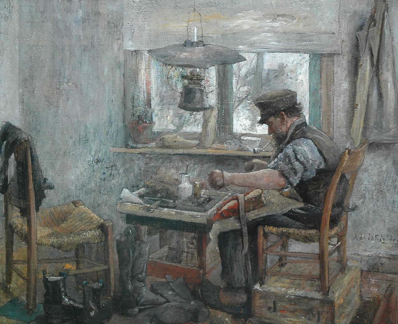 Adriaan de la Rivière kunstwerk • schilderij • voorheen te koop De schoenmaker