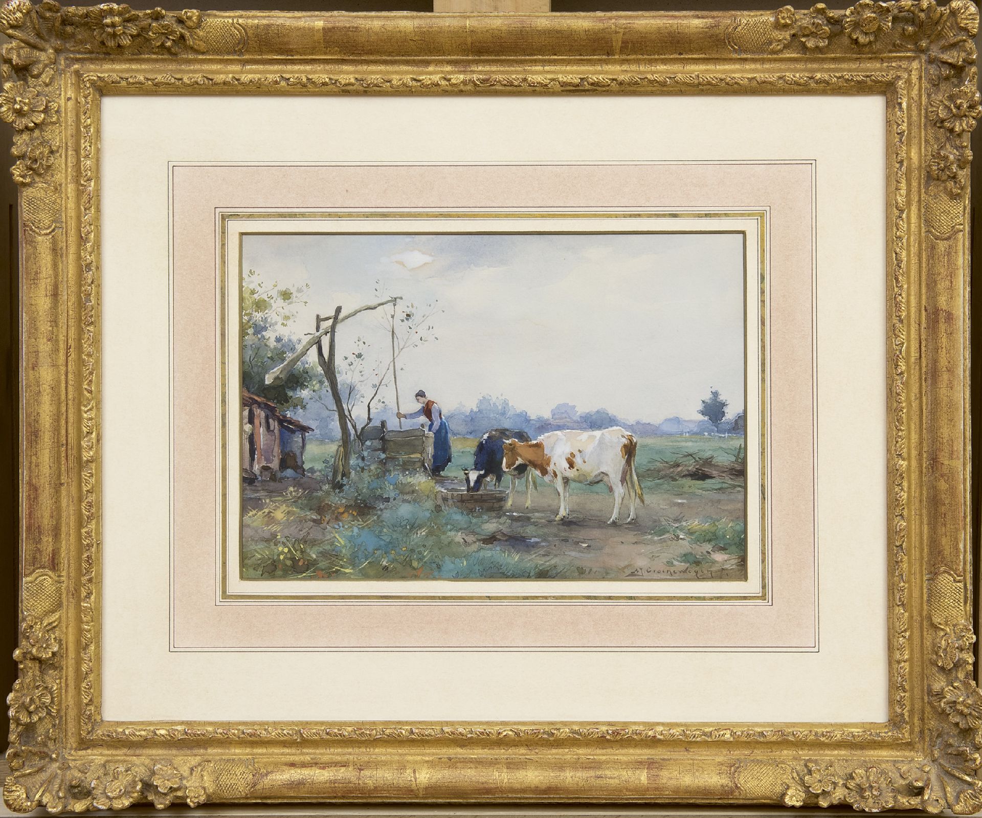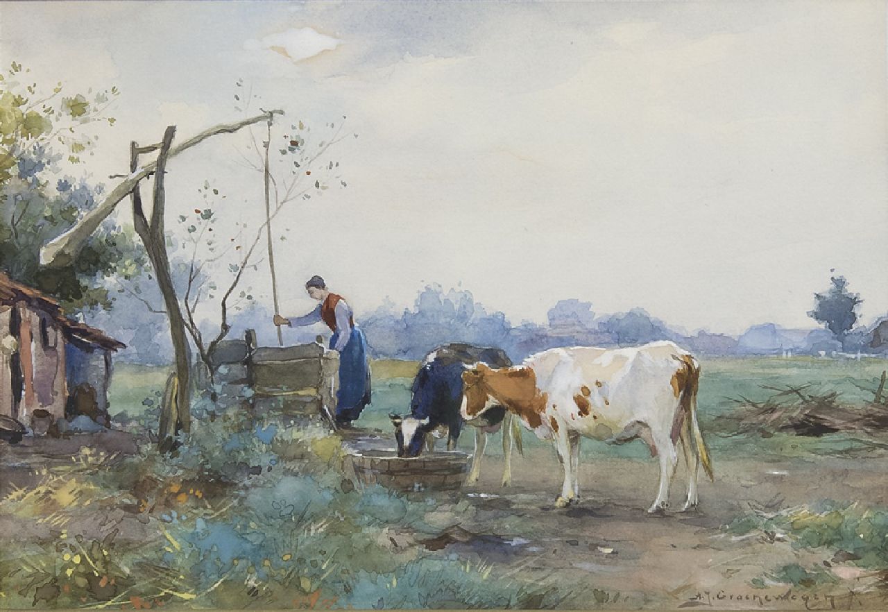 Adriaan Groenewegen kunstwerk • aquarel • tekening • voorheen te koop Bij de waterput