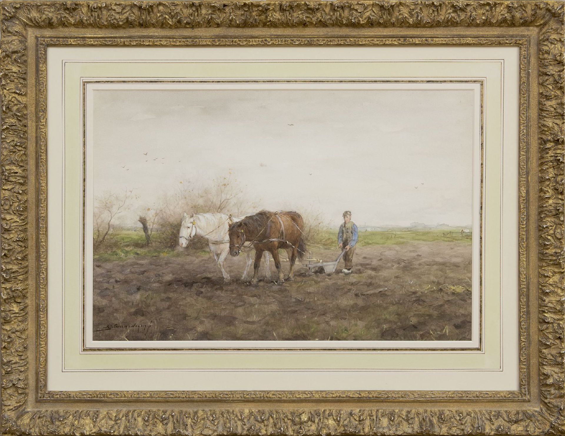 Adriaan Groenewegen kunstwerk • aquarel • tekening • te koop Ploegende boer