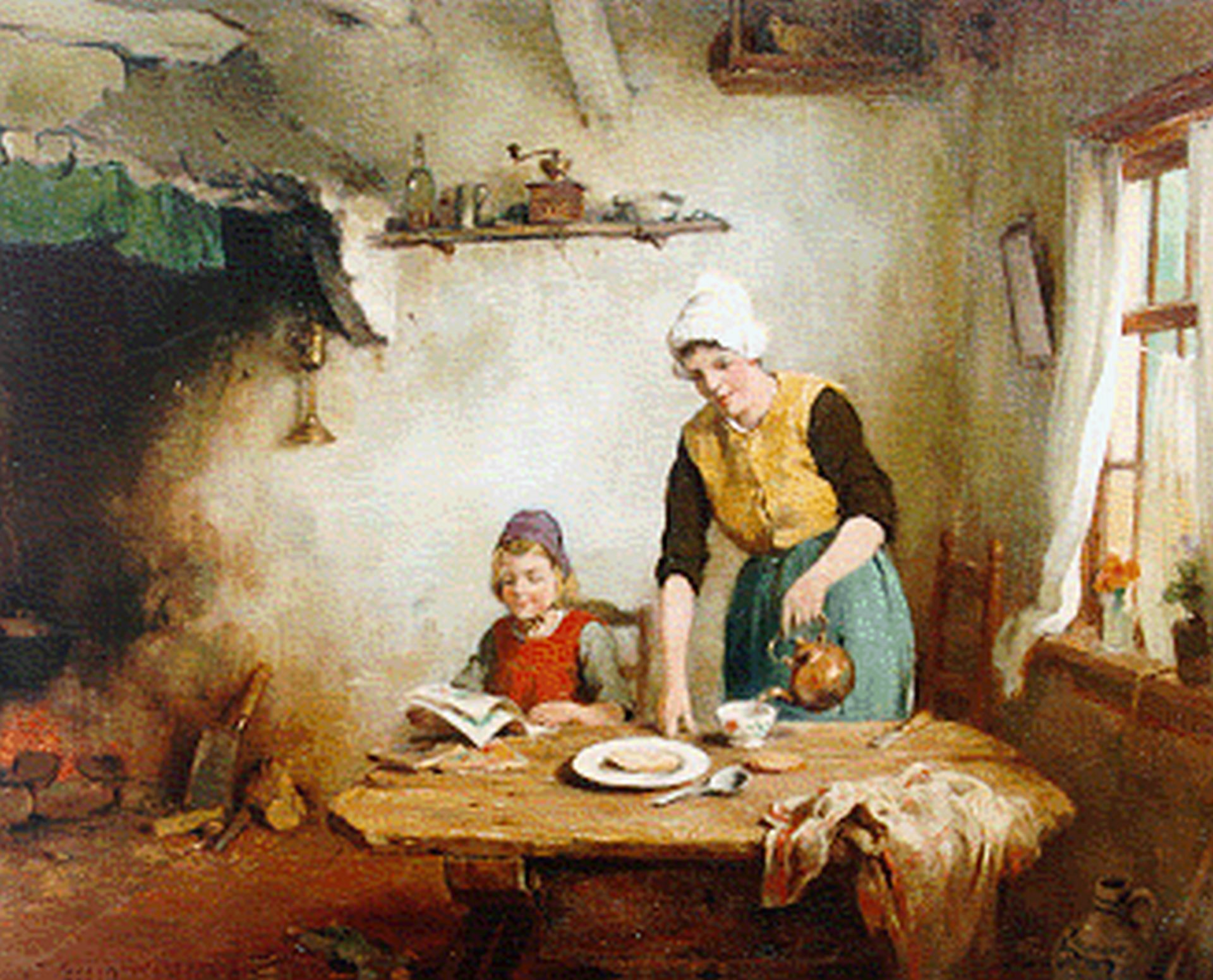 Adriaan Groenewegen kunstwerk • schilderij • voorheen te koop Kopje thee