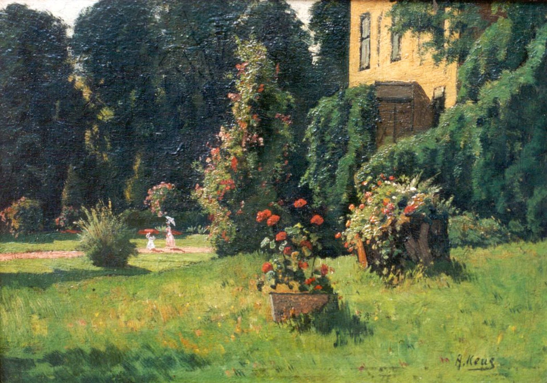 Keus A.  | Adriaan Keus, Buitenplaats, olieverf op paneel 25,7 x 36,5 cm, gesigneerd rechtsonder
