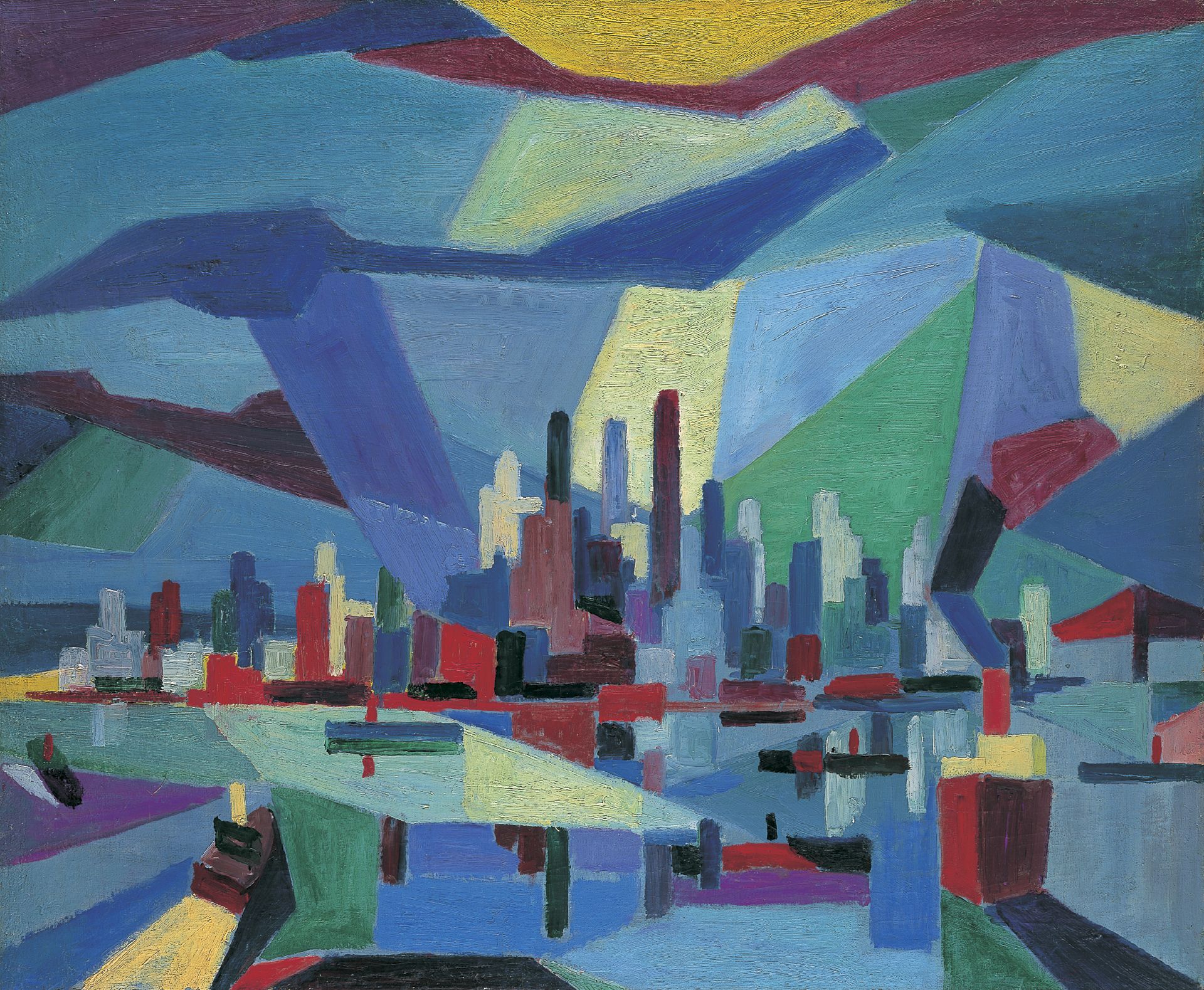 annotatie verso: 'Adriaan Lubbers, South Ferry (Forestudy Rhapsody in Blue), 1953, No. 6'