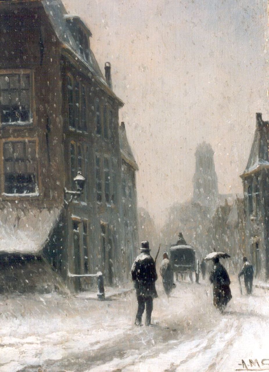 Adriaan Marinus Geijp kunstwerk • schilderij • voorheen te koop Besneeuwd stadsgezicht