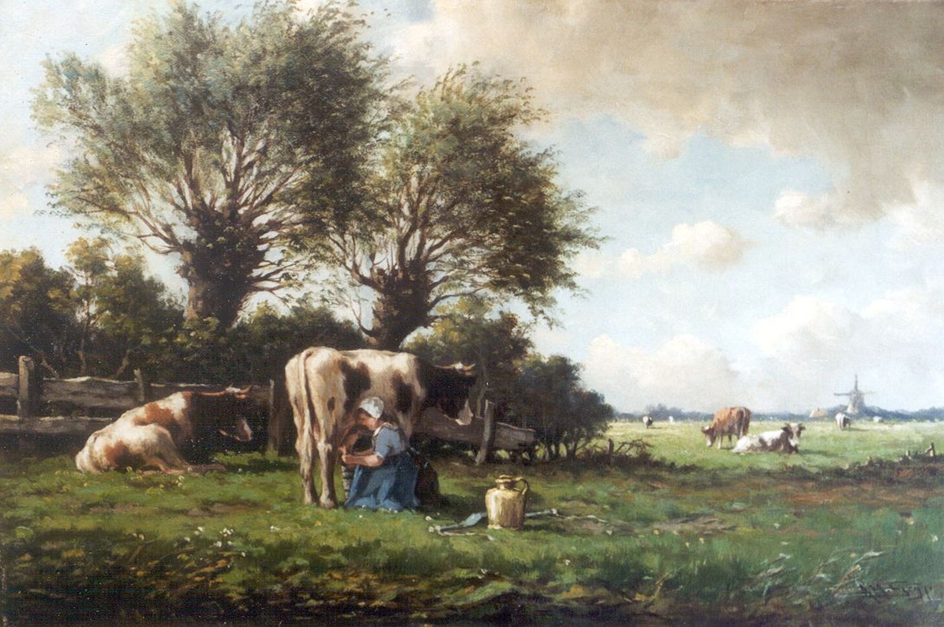 Adriaan Marinus Geijp kunstwerk • schilderij • voorheen te koop Melktijd
