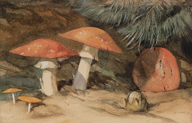 Adriaan van 't Hoff | Vliegenzwammen, aquarel op papier, 35,8 x 59,2 cm, gesigneerd r.o. en gedateerd 1923, zonder lijst