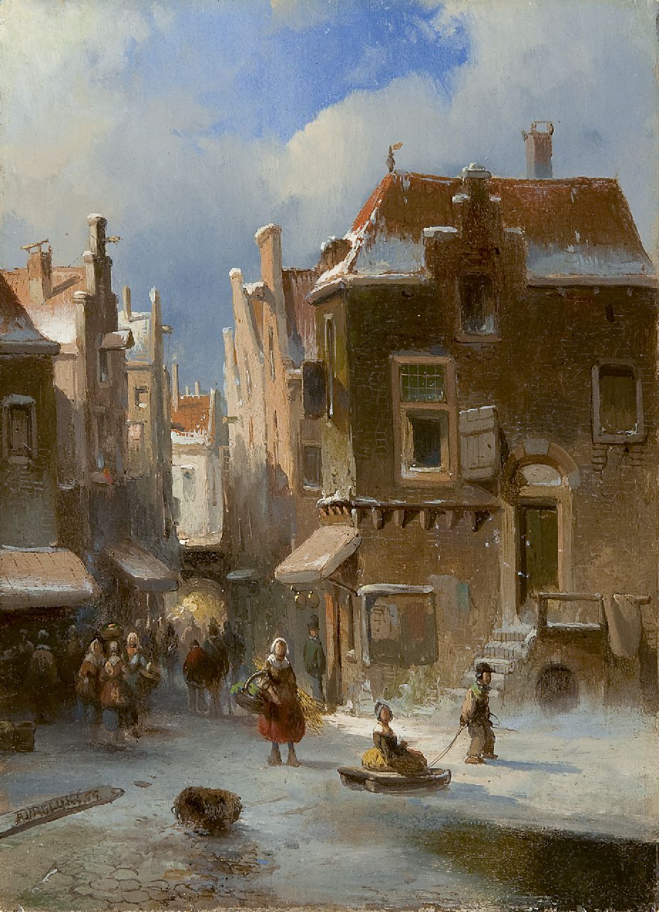 Adriaan Vrolijk kunstwerk • schilderij • voorheen te koop Besneeuwd straatje