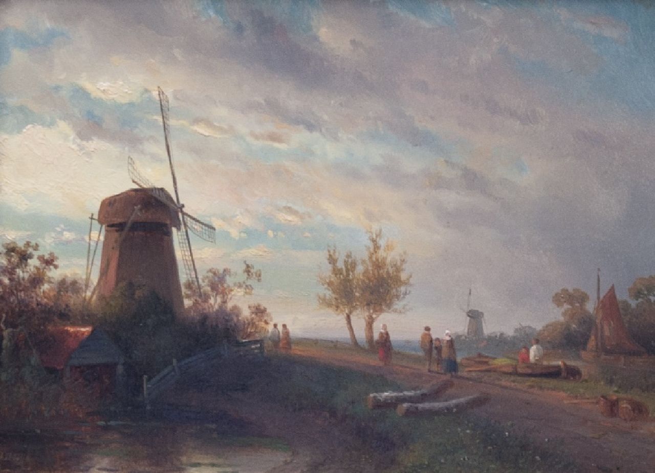 Adriaan Vrolijk kunstwerk • schilderij • te koop Molens en figuren in een landschap