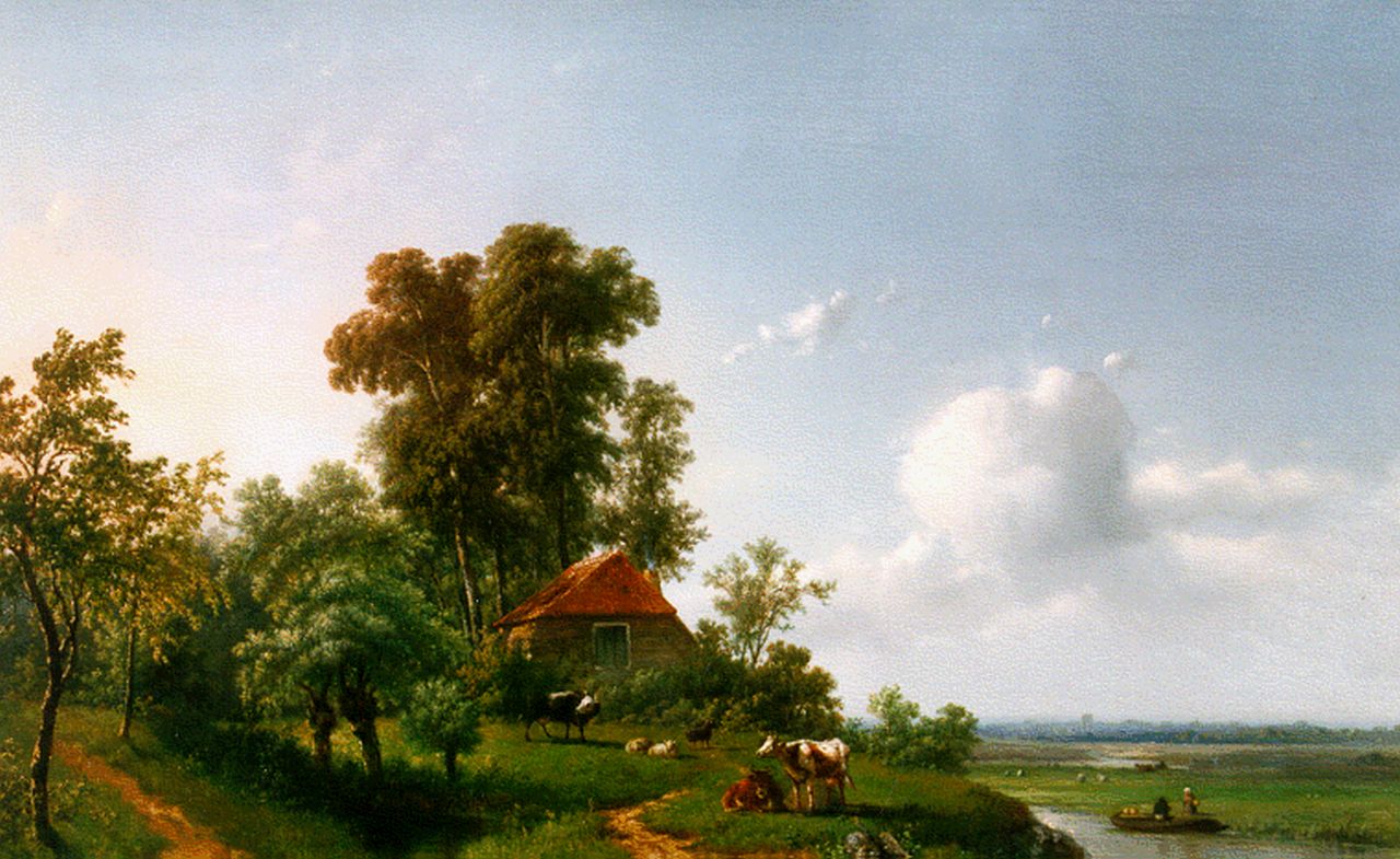 Adriaan Vrolijk kunstwerk • schilderij • voorheen te koop Zomers boerenlandschap met beekje
