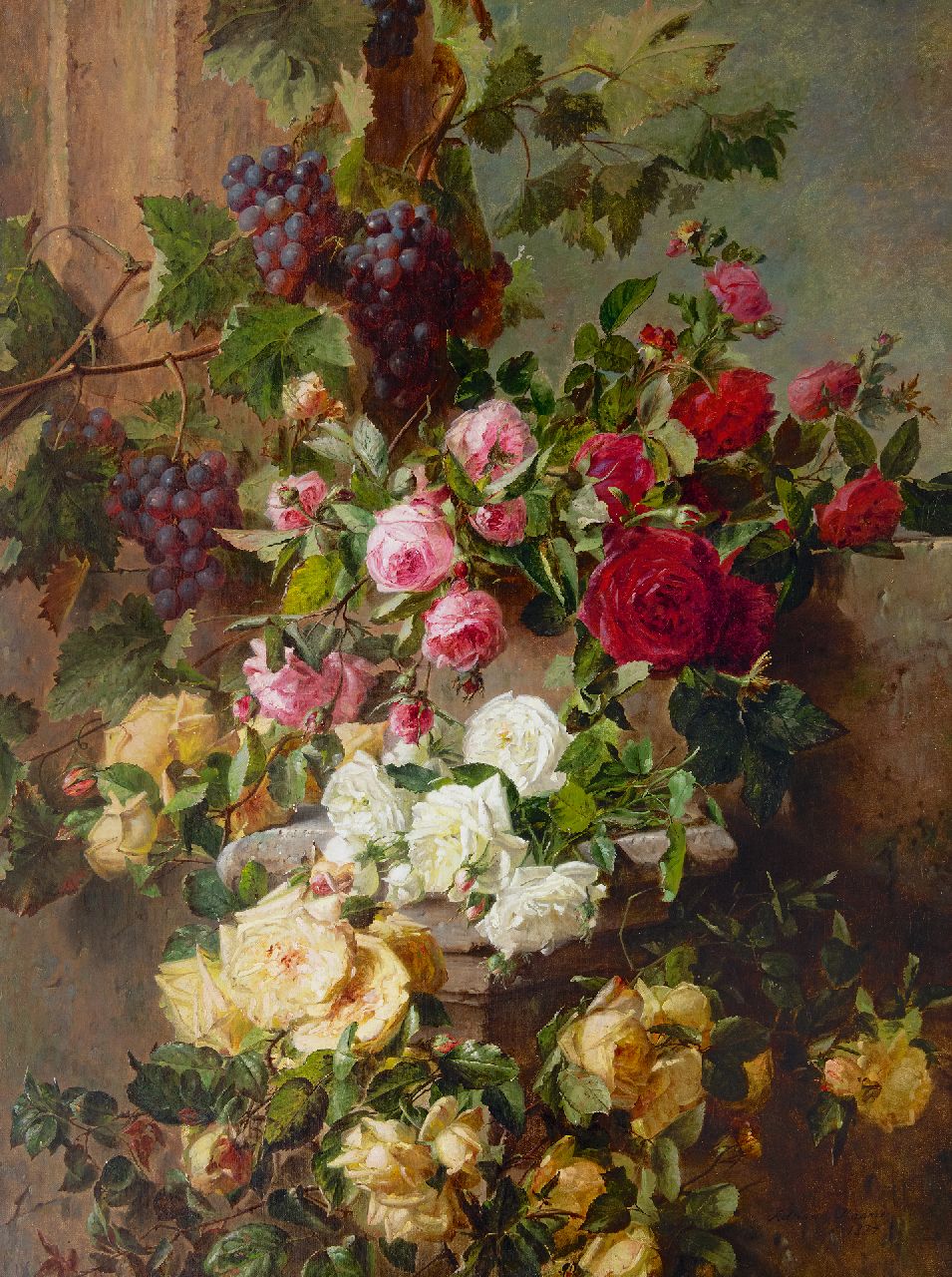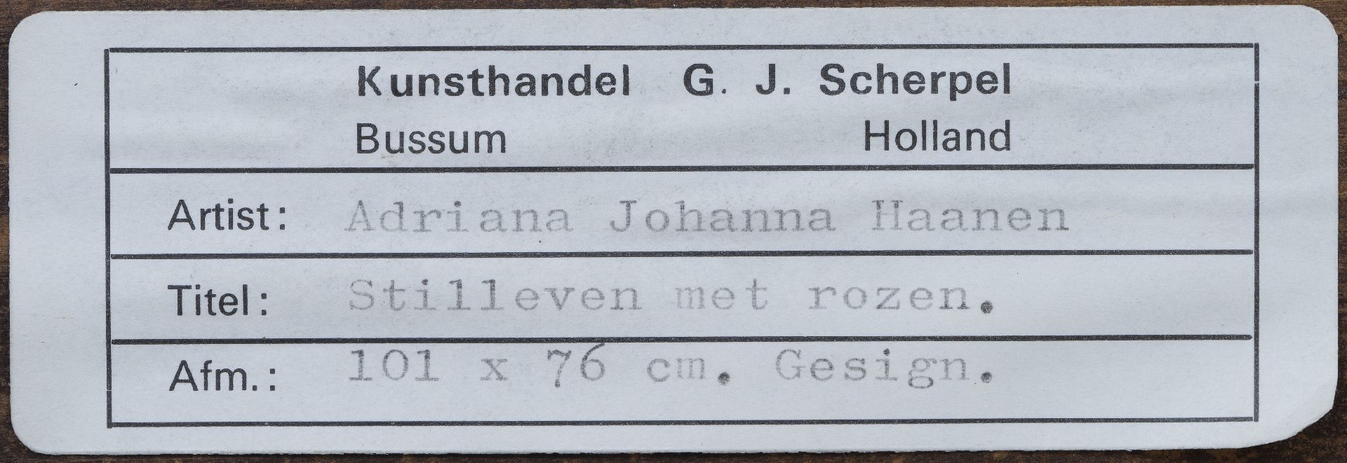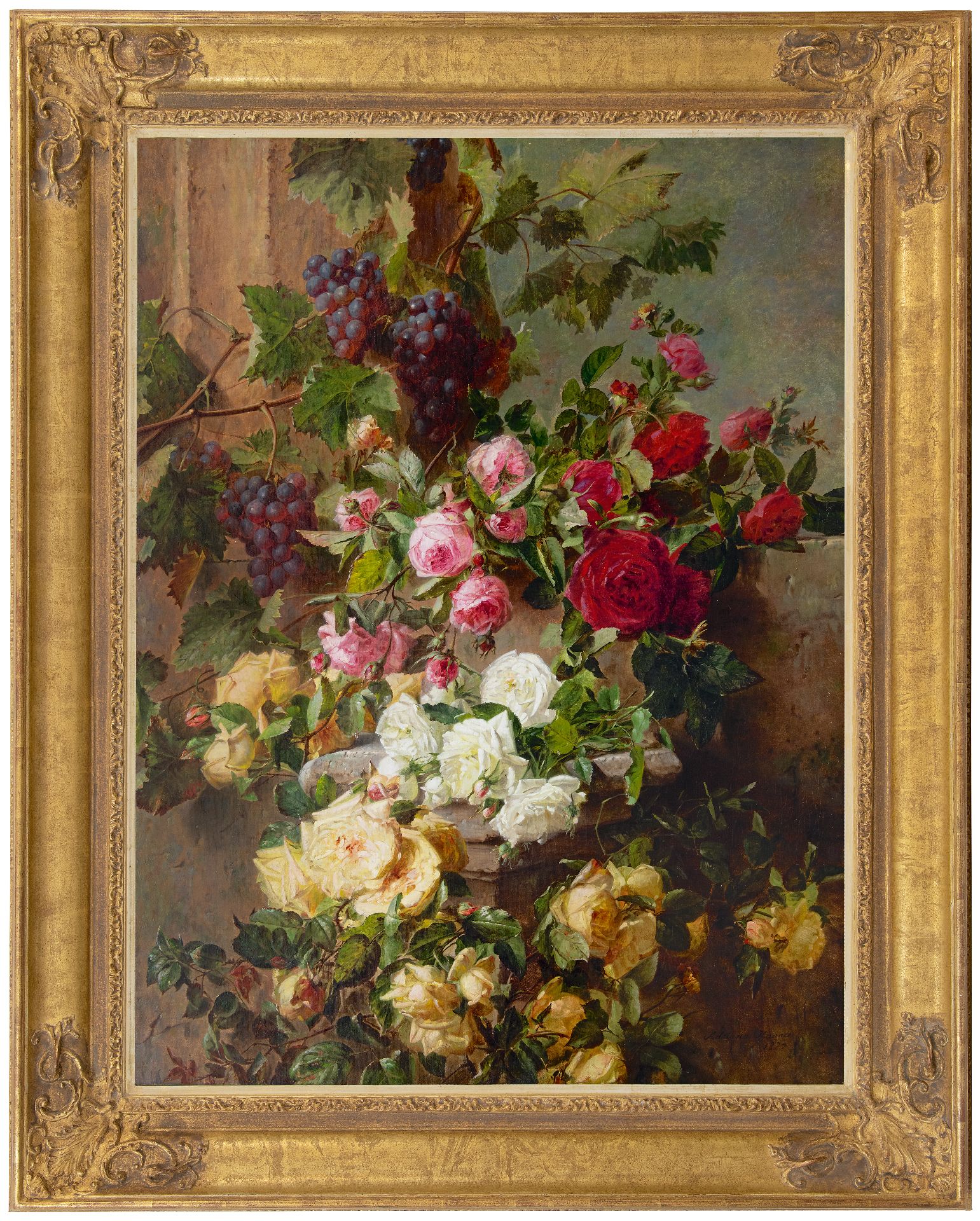 Adriana Haanen kunstwerk • schilderij • voorheen te koop Stilleven met rozen en druiven