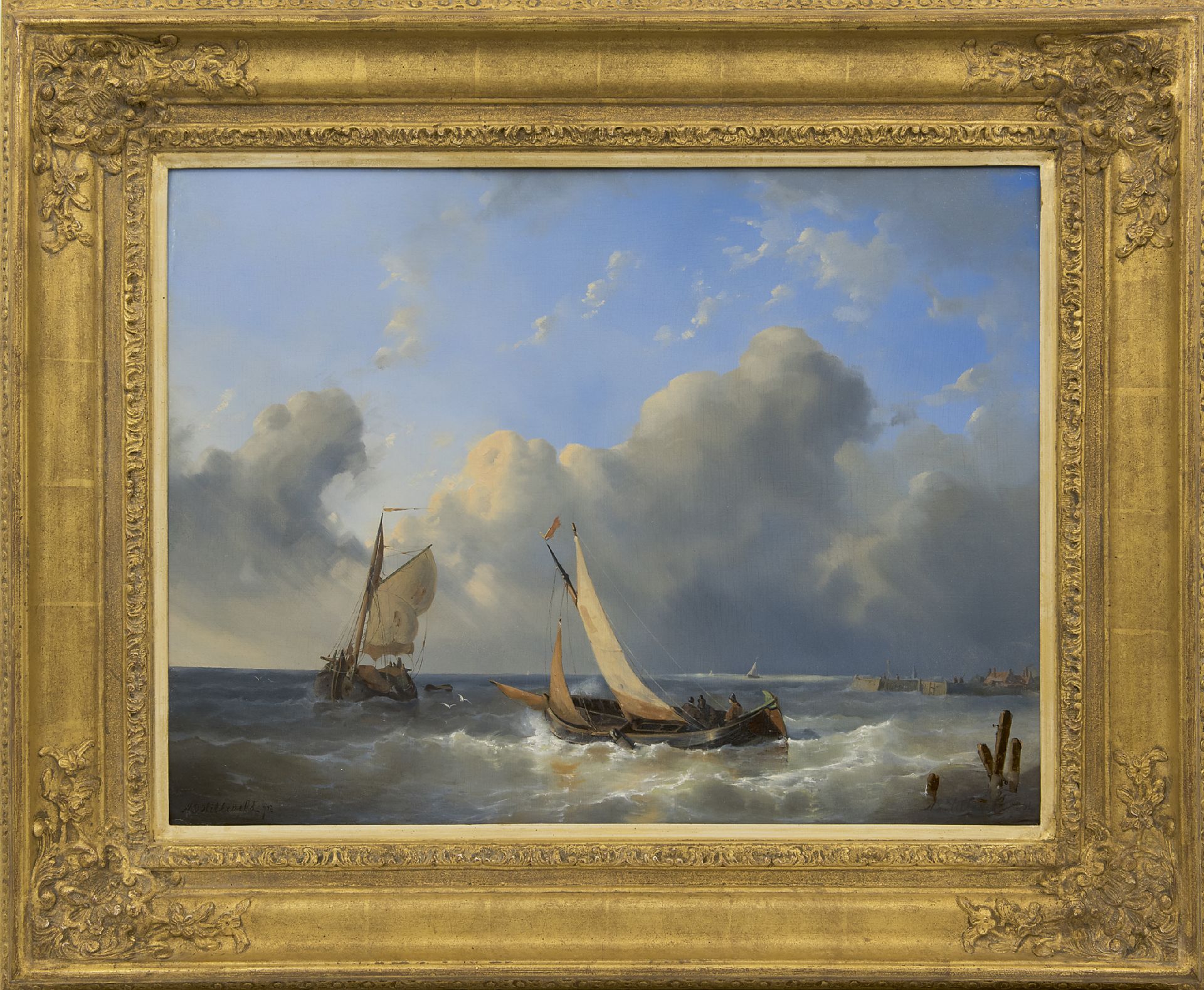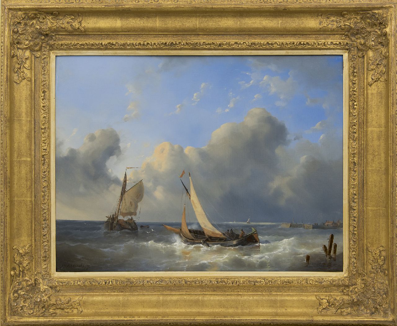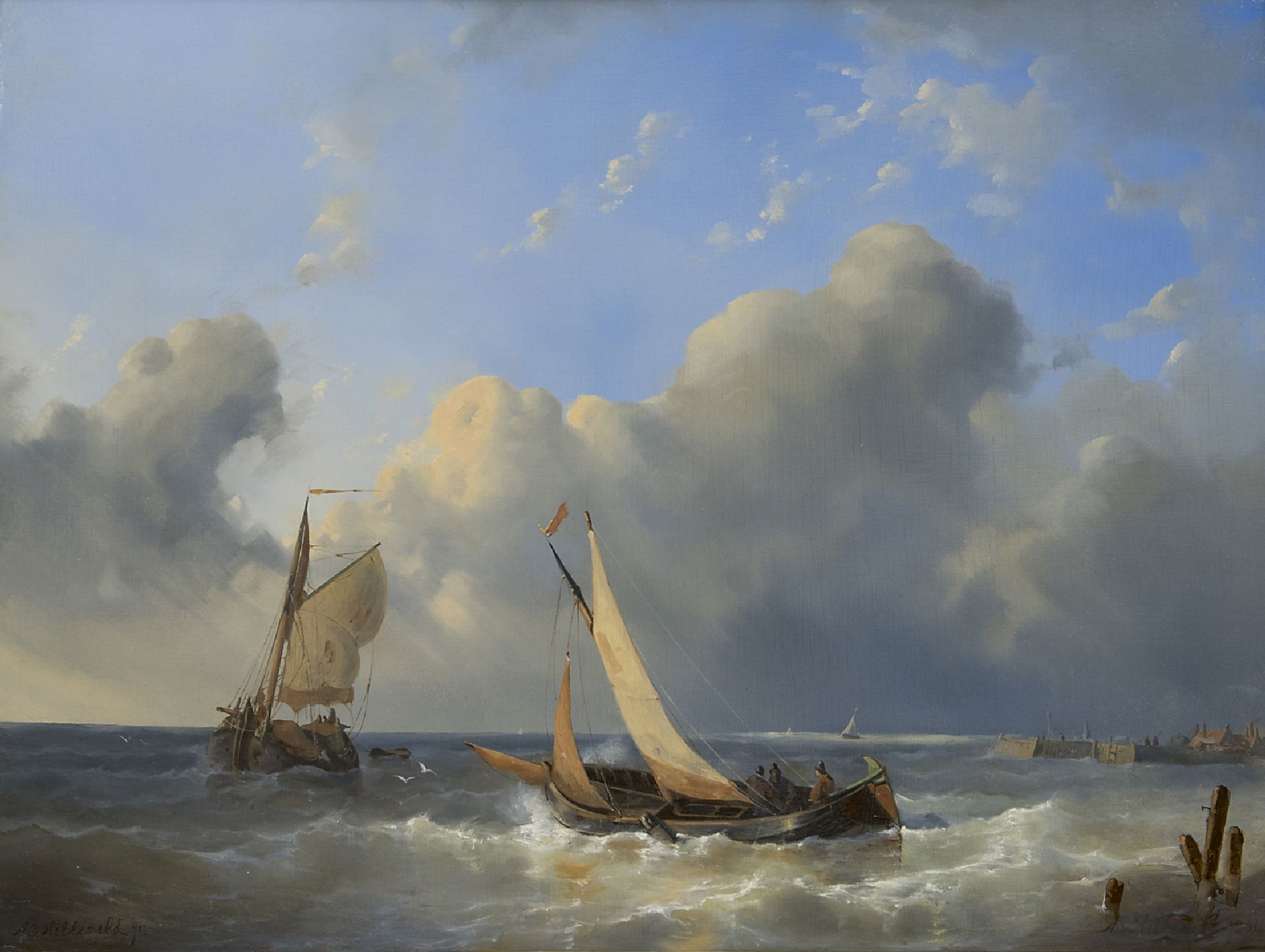 Adrianus David Hilleveld kunstwerk • schilderij • voorheen te koop Laverende zeilschepen voor een haveningang