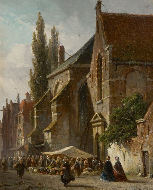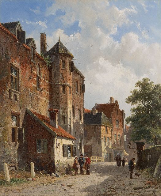 Adrianus Eversen gold als de meest begaafde leerling van de beroemde stadsgezichtenschilder Cornelis Springer. Van zijn leermeester nam Eversen de compositorische opbouw, uitwerking van details en het warme kleurenschema over. In de keuze van zijn onderwerpen was hij echter vrijer. Schilderde Springer vooral 'portretten' van bestaande gebouwen en stadsdelen, Eversen arrangeerde zijn dorpen en straatjes doorgaans zó dat er een fraai stadsbeeld ontstond.