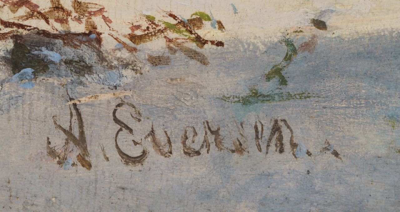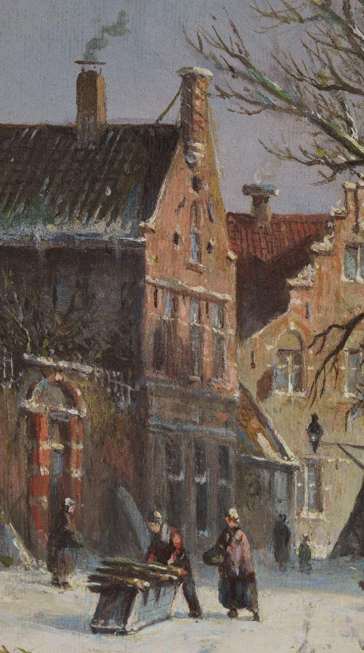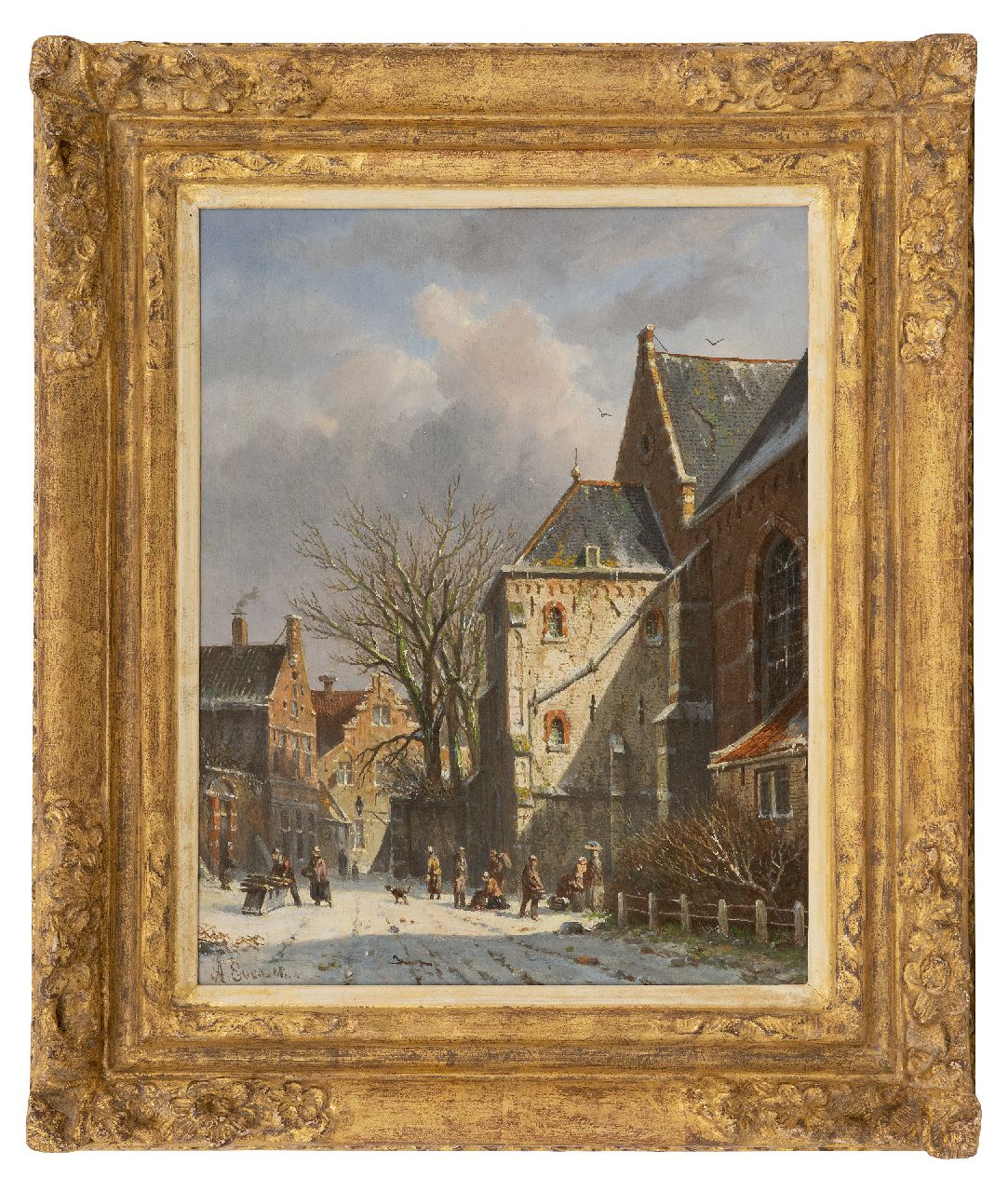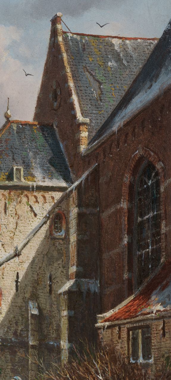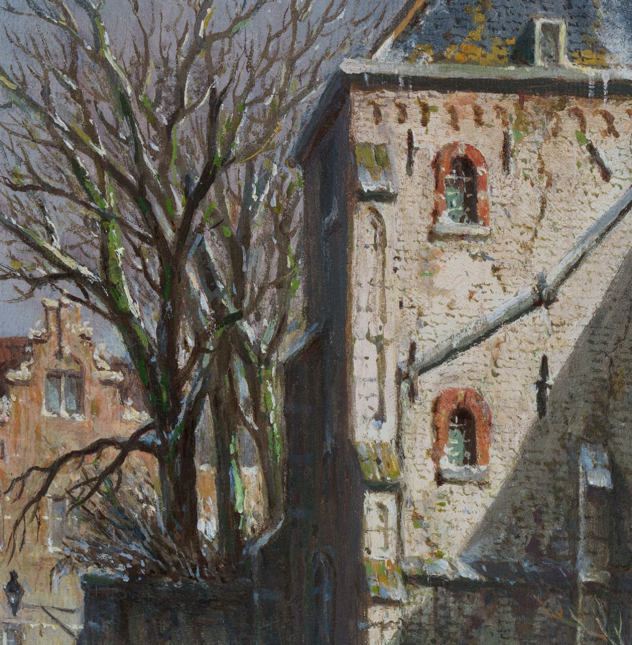 Adrianus Eversen kunstwerk • schilderij • te koop Besneeuwd gezicht achter de Westerkerk in Enkhuizen (verkoop alleen samen met zomers pendant, tezamen)