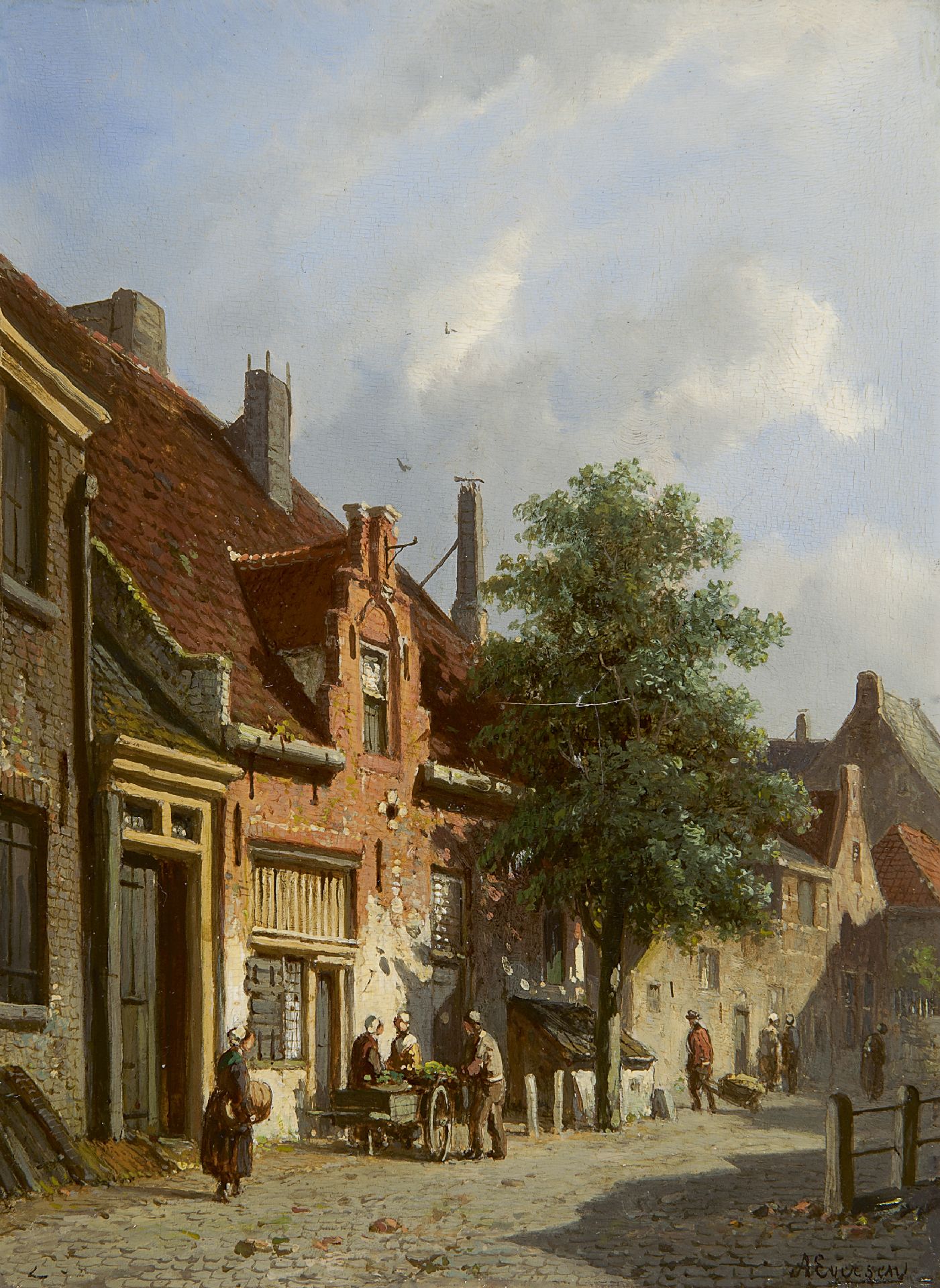 Adrianus Eversen kunstwerk • schilderij • voorheen te koop De Breesteeg te Haarlem