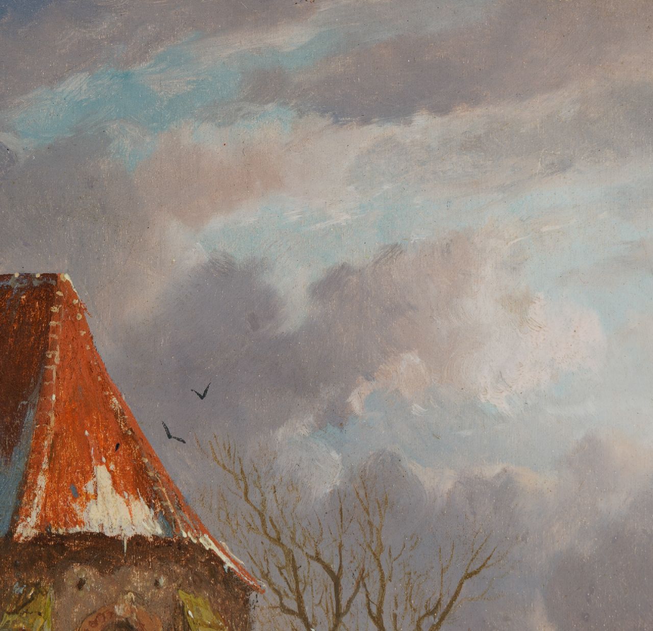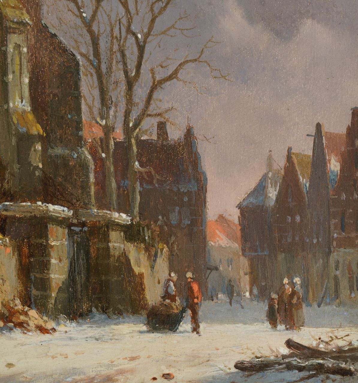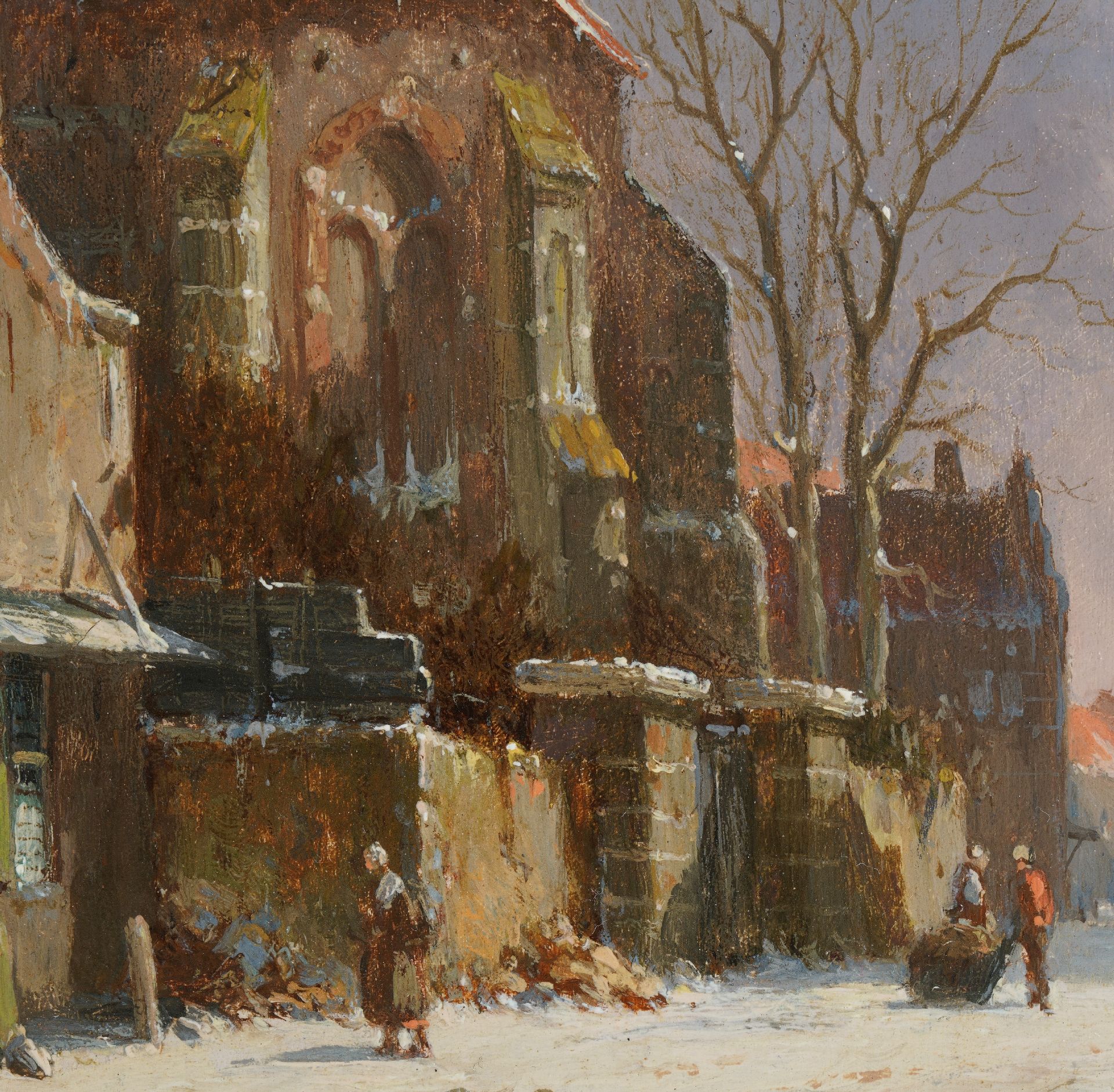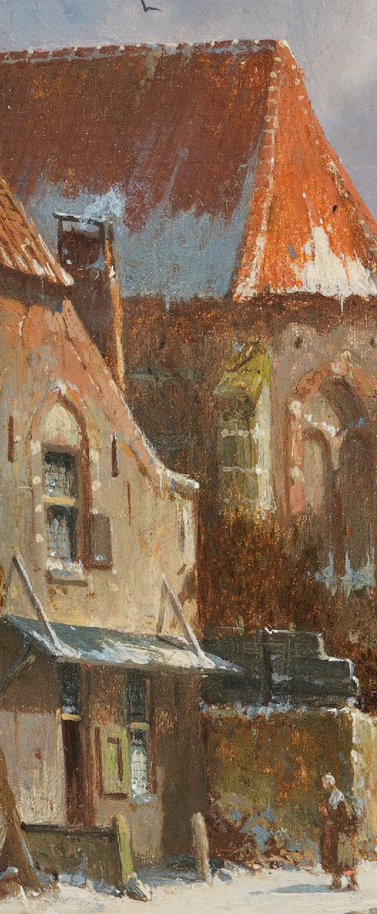 Adrianus Eversen kunstwerk • schilderij • te koop Figuren bij een kerkpoort in de winter (pendant van 25438)