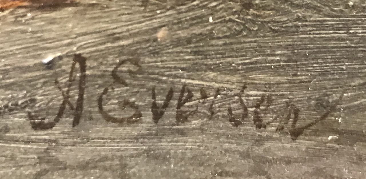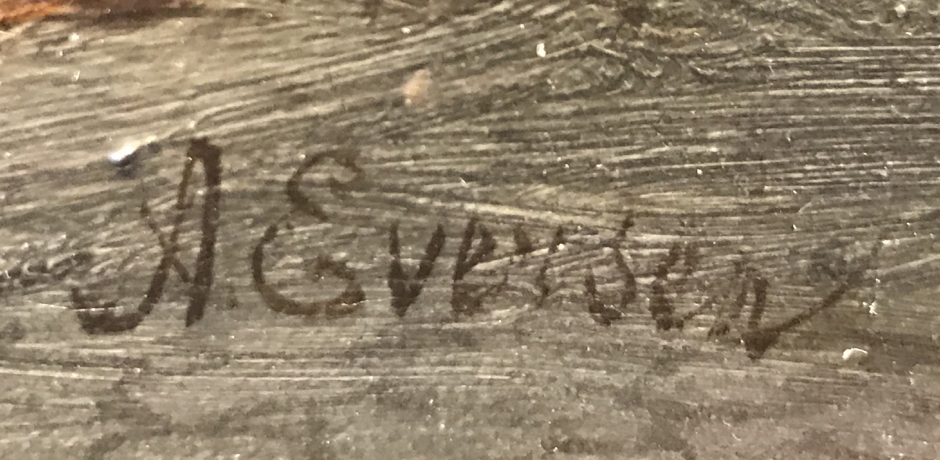 olieverf op doek 47,8 x 38,7 cm, gesigneerd rechtsonder en verso op etiket