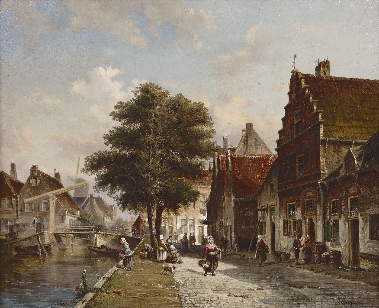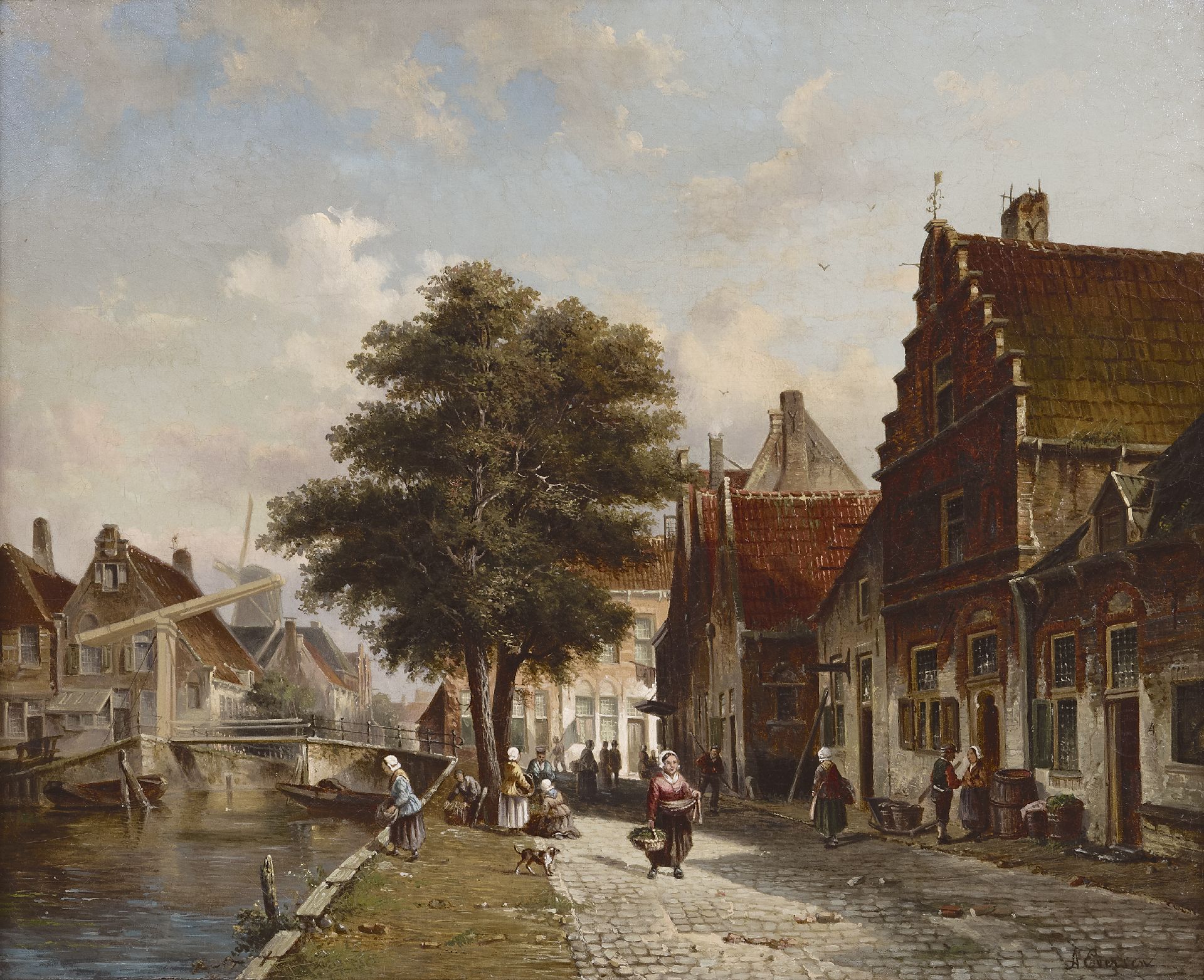 Adrianus Eversen kunstwerk • schilderij • voorheen te koop Gezicht op de Burgwal te Haarlem