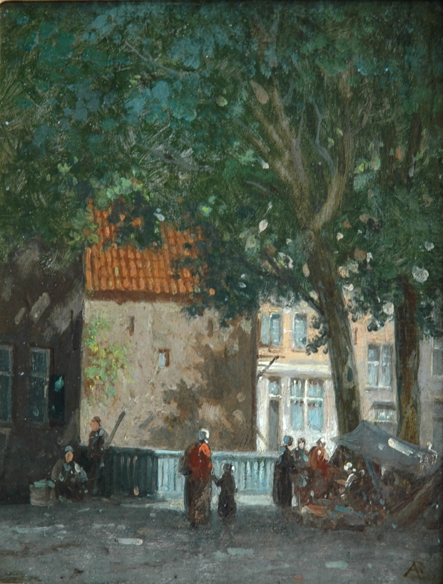 Adrianus Eversen kunstwerk • schilderij • voorheen te koop Marktstalletje onder de bomen