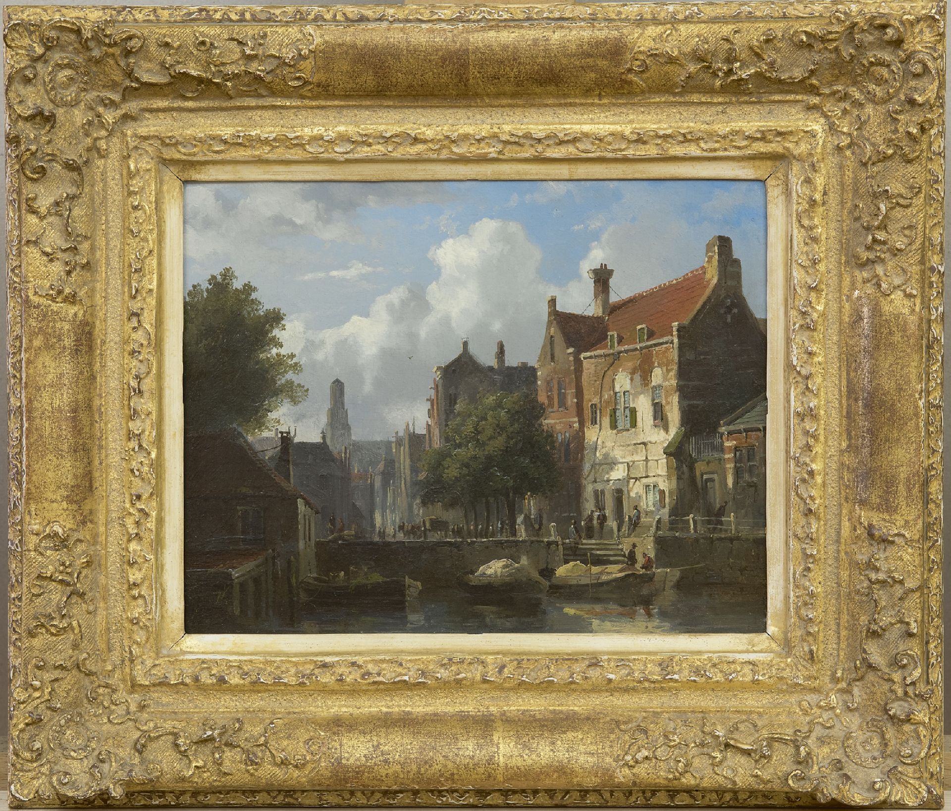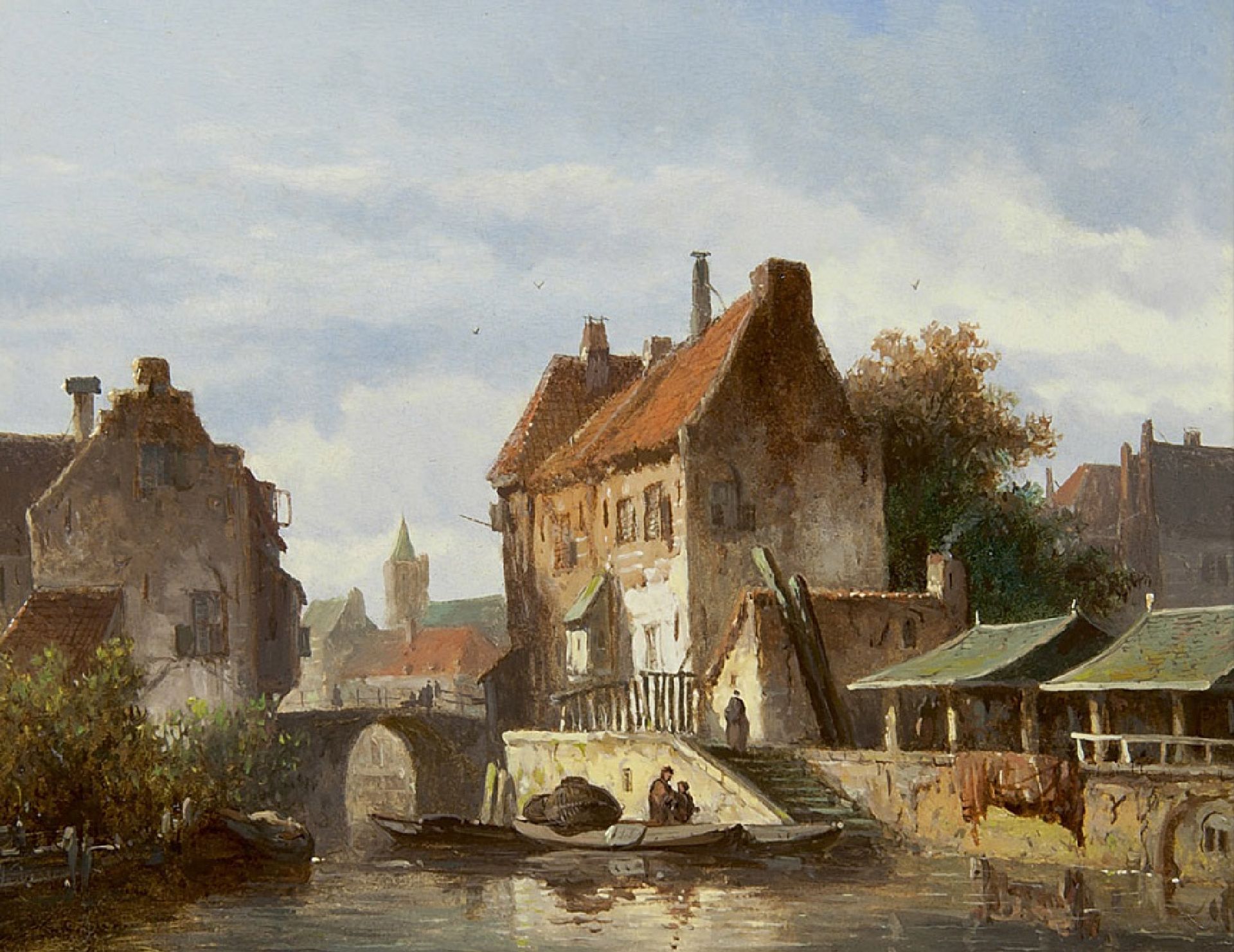 Adrianus Eversen kunstwerk • schilderij • voorheen te koop Stadsgezicht met binnenwater