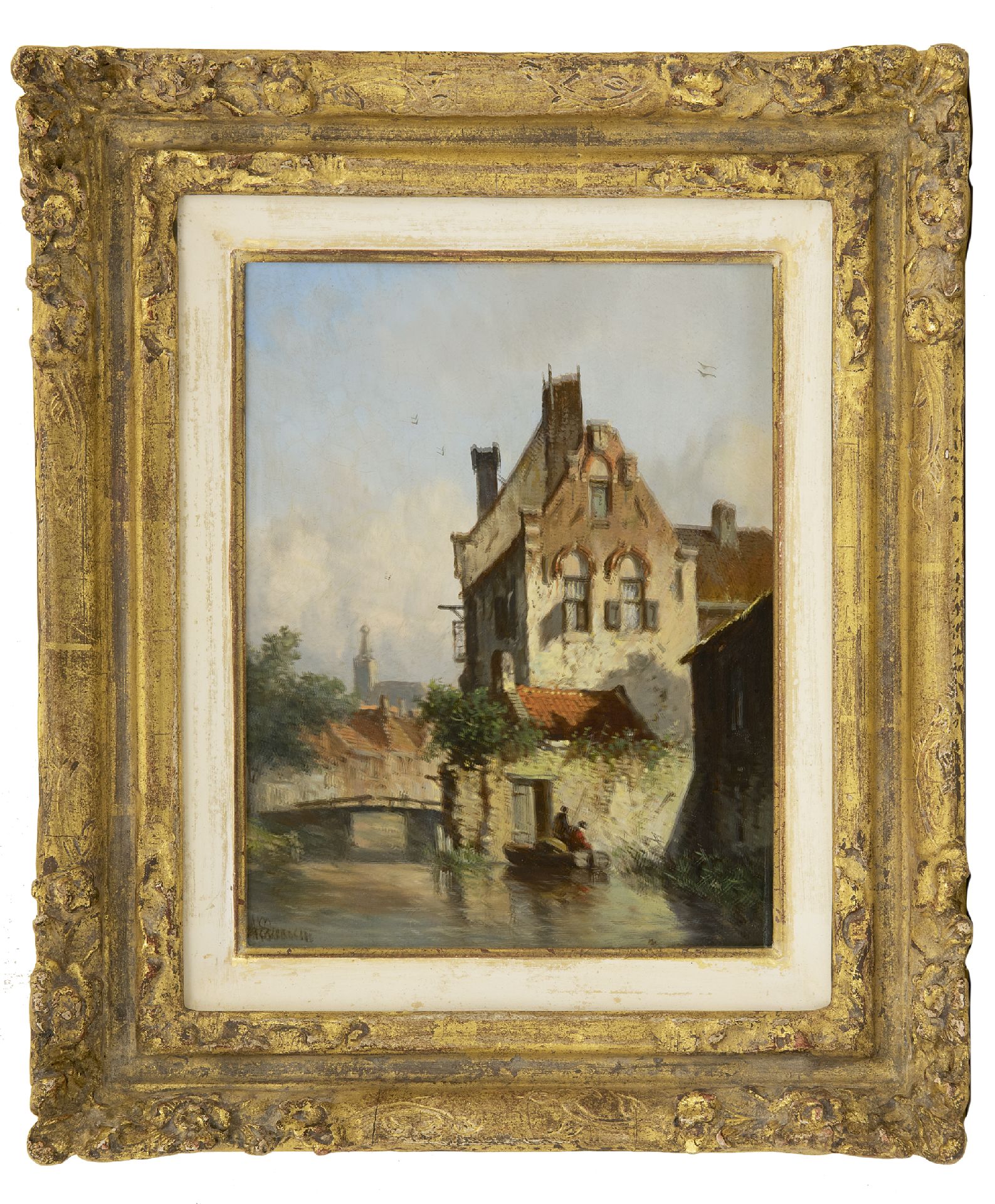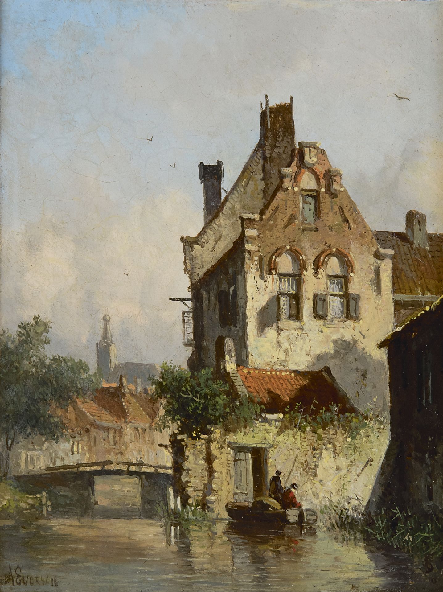 Adrianus Eversen kunstwerk • schilderij • voorheen te koop Vissers in de stadsgracht, bij zomer