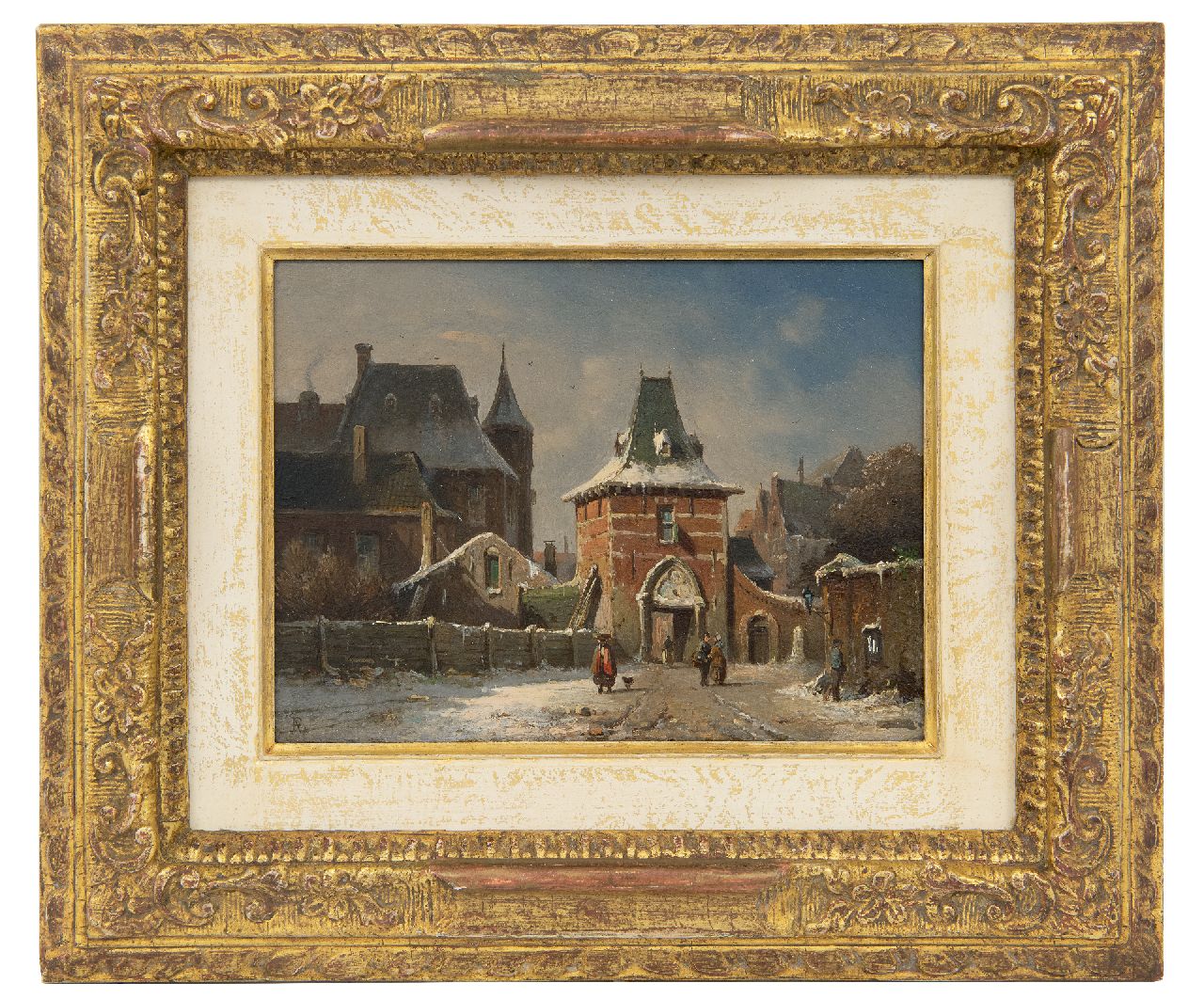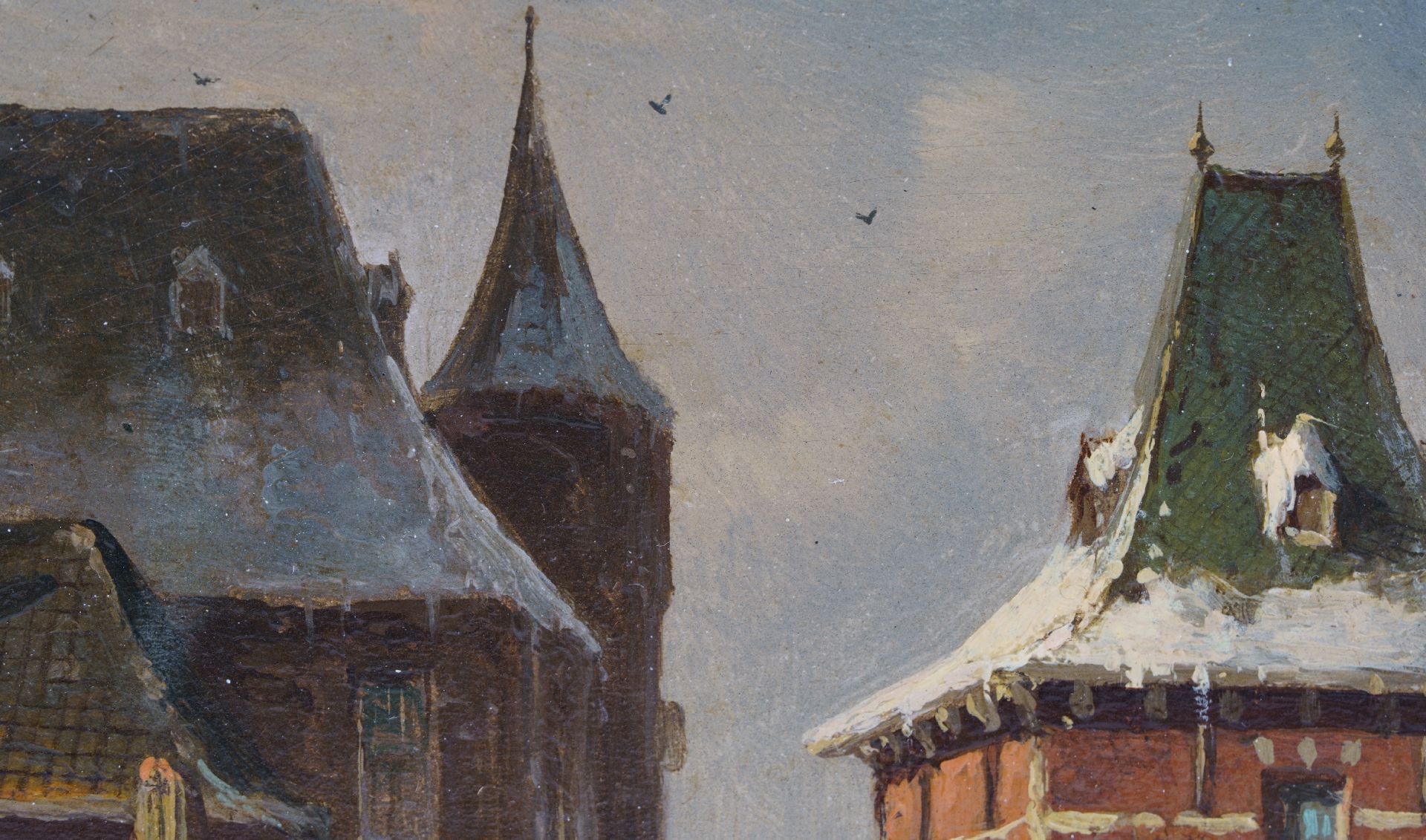 Elias Pieter van Bommel kunstwerk • schilderij • te koop Winters stadsgezicht met de Oude Kerk van Delft (naar A. Eversen)