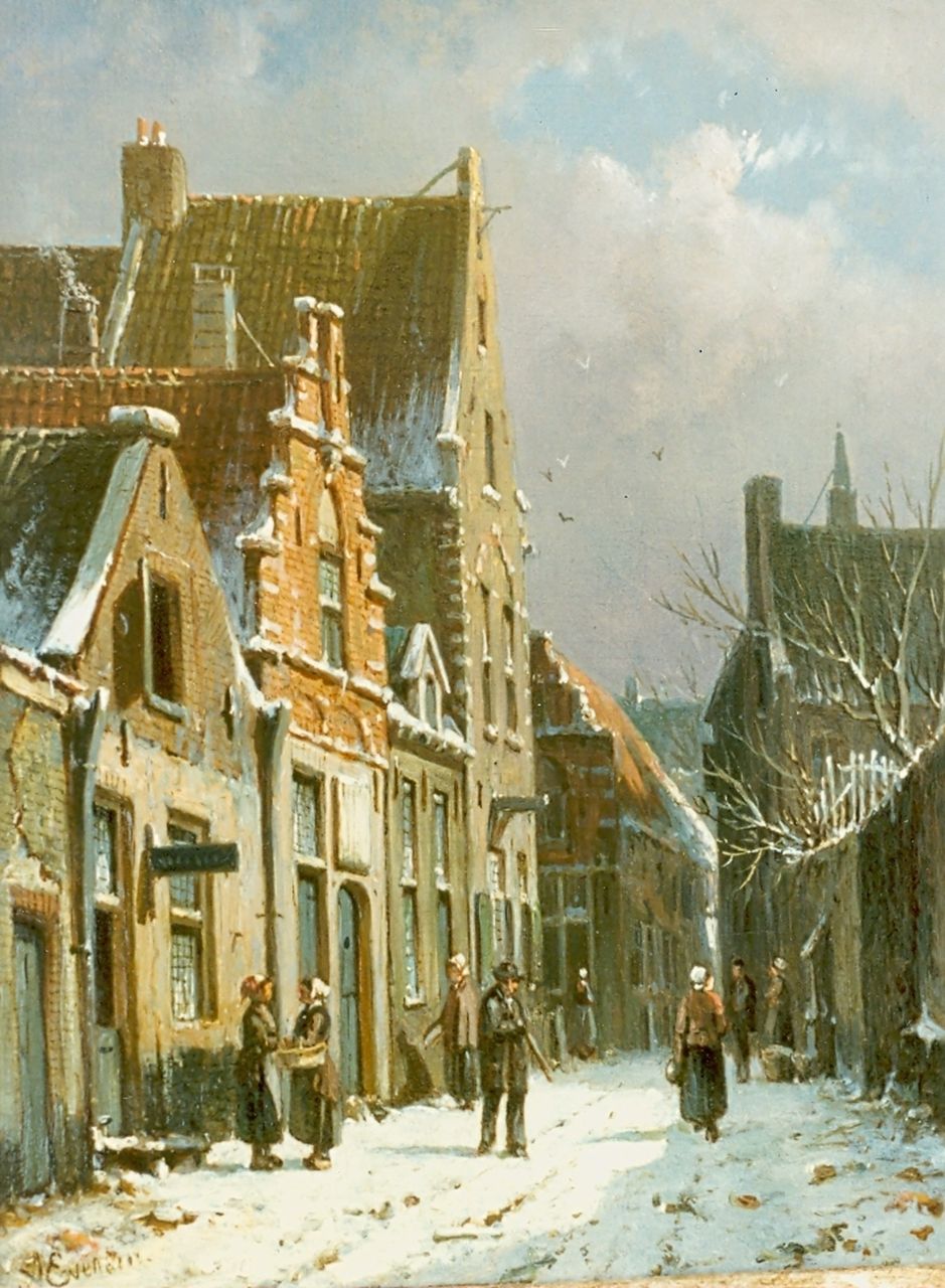 Adrianus Eversen kunstwerk • schilderij • voorheen te koop Winters straatgezicht