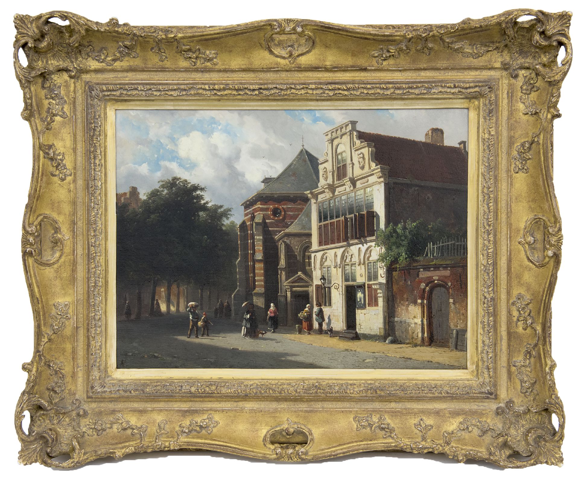 Adrianus Eversen kunstwerk • schilderij • voorheen te koop Zomers gezicht op de Petruskerk en het Stedehuys te Woerden