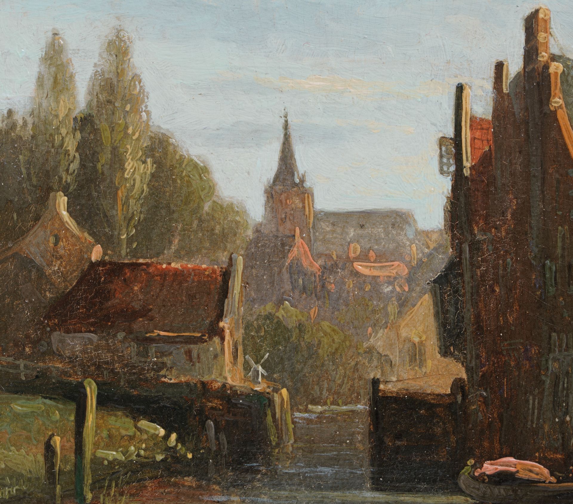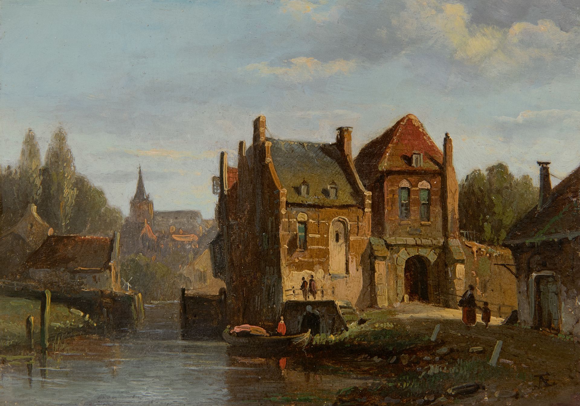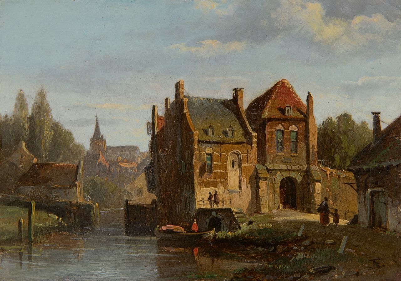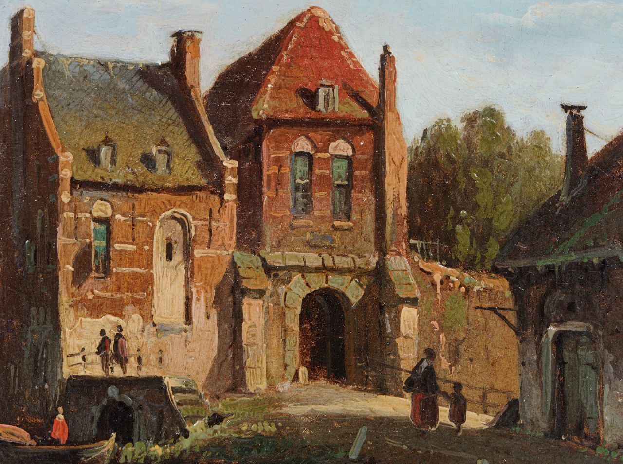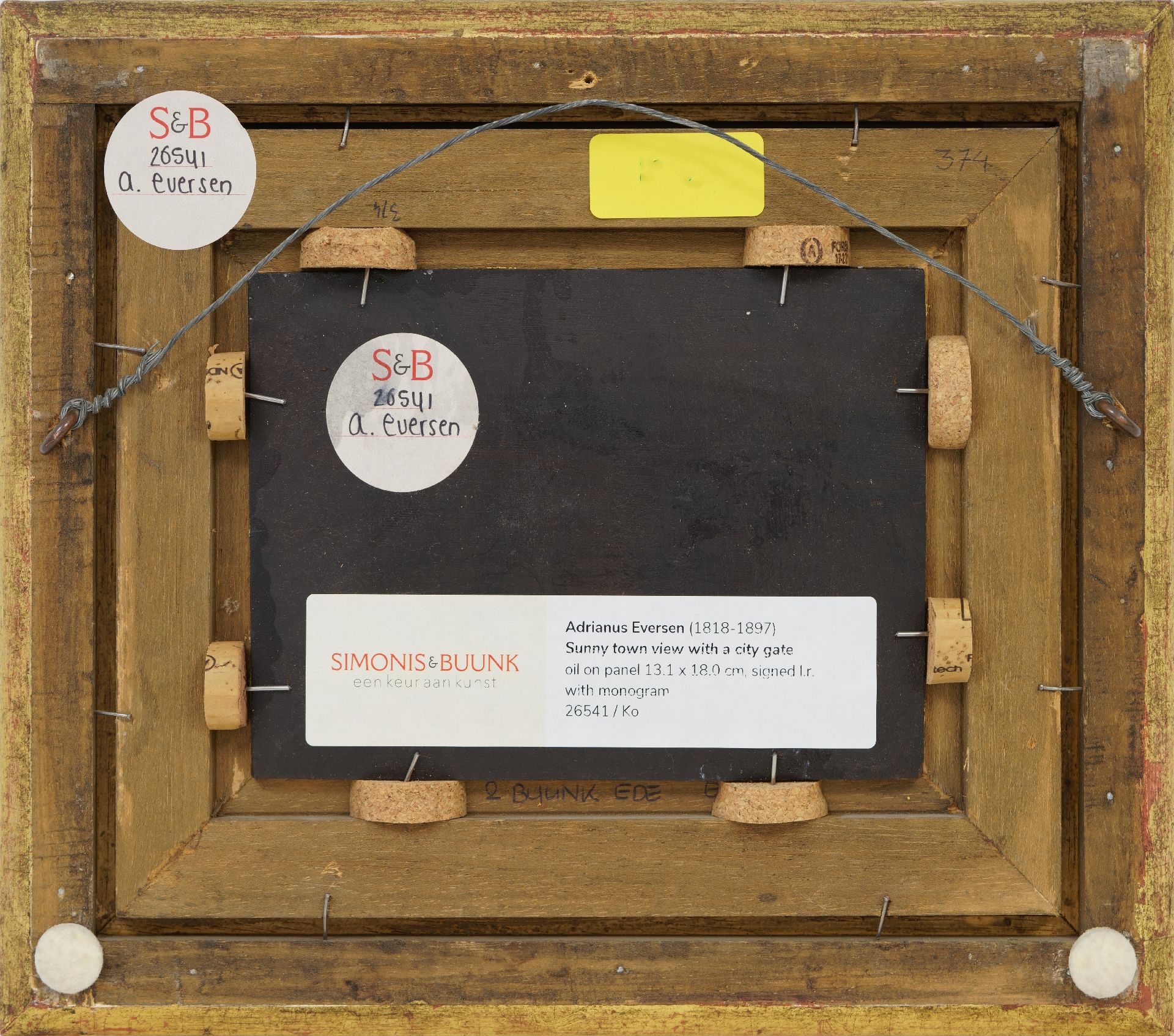 Adrianus Eversen kunstwerk • schilderij • te koop Zonnig stadsgezicht met stadspoortje