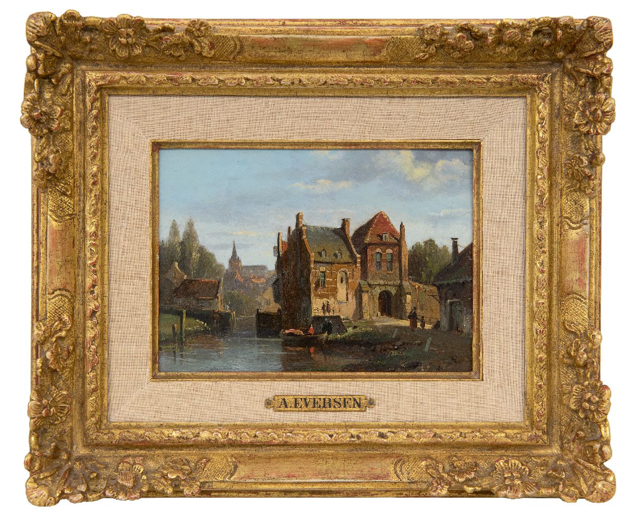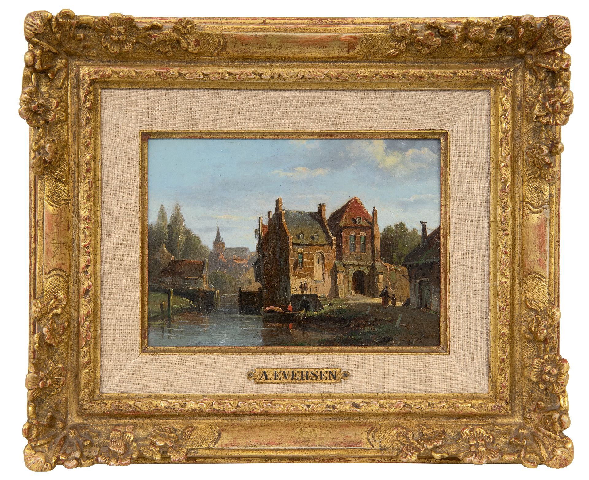 Adrianus Eversen gold als de meest begaafde leerling van de beroemde stadsgezichtenschilder Cornelis Springer. Van zijn leermeester nam Eversen de compositorische opbouw, uitwerking van details en het warme kleurenschema over. In de keuze van zijn onderwerpen was hij echter vrijer. Schilderde Springer vooral 'portretten' van bestaande gebouwen en stadsdelen, Eversen arrangeerde zijn dorpen en straatjes doorgaans zó dat er een fraai stadsbeeld ontstond.