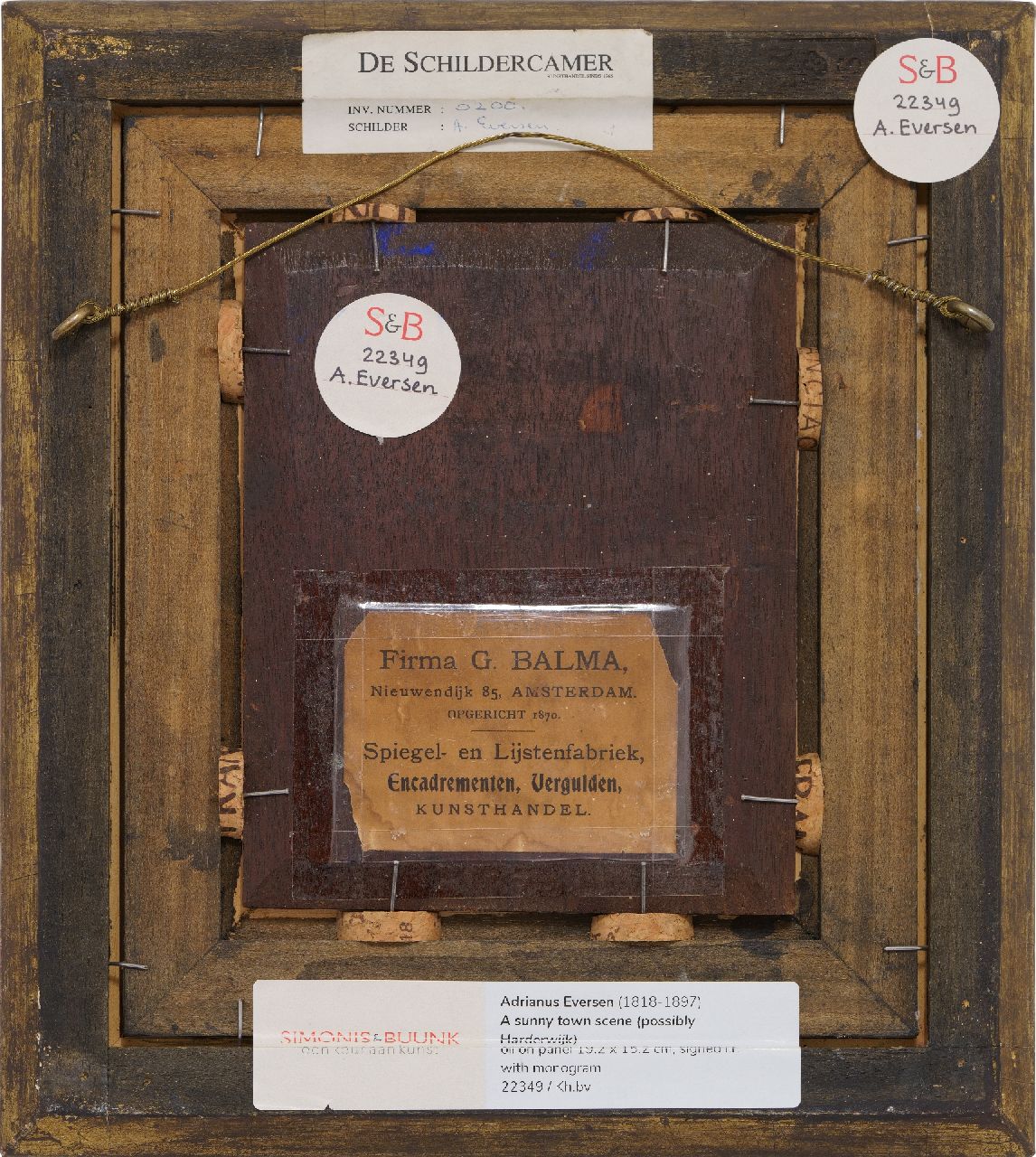Adrianus Eversen gold als de meest begaafde leerling van de beroemde stadsgezichtenschilder Cornelis Springer. Van zijn leermeester nam Eversen de compositorische opbouw, uitwerking van details en het warme kleurenschema over. In de keuze van zijn onderwerpen was hij echter vrijer. Schilderde Springer vooral 'portretten' van bestaande gebouwen en stadsdelen, Eversen arrangeerde zijn dorpen en straatjes doorgaans zó dat er een fraai stadsbeeld ontstond.