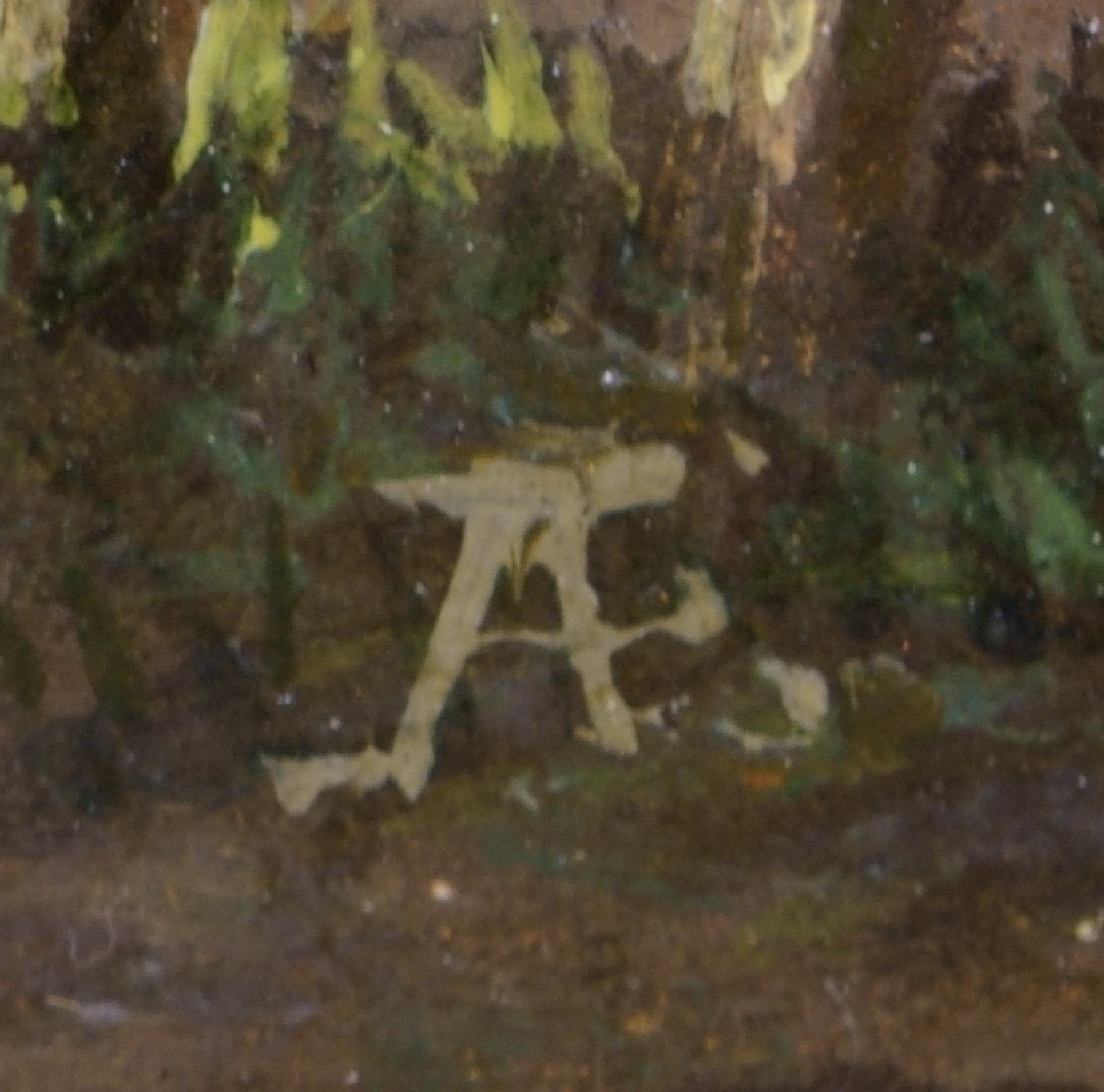 olieverf op paneel 19,2 x 15,2 cm, gesigneerd rechtsonder met monogram