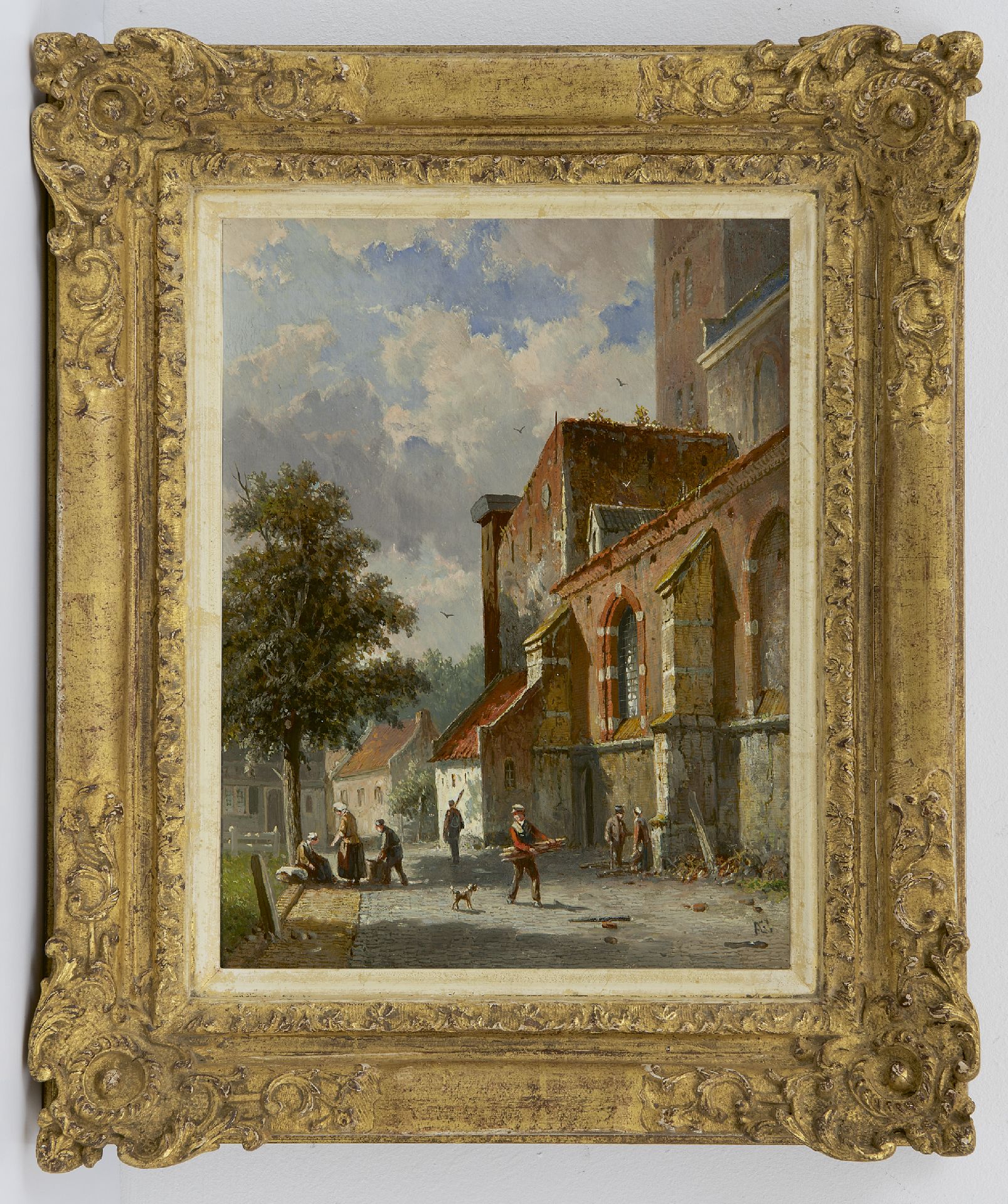 Adrianus Eversen kunstwerk • schilderij • voorheen te koop Zonnig straatje achter de kerk