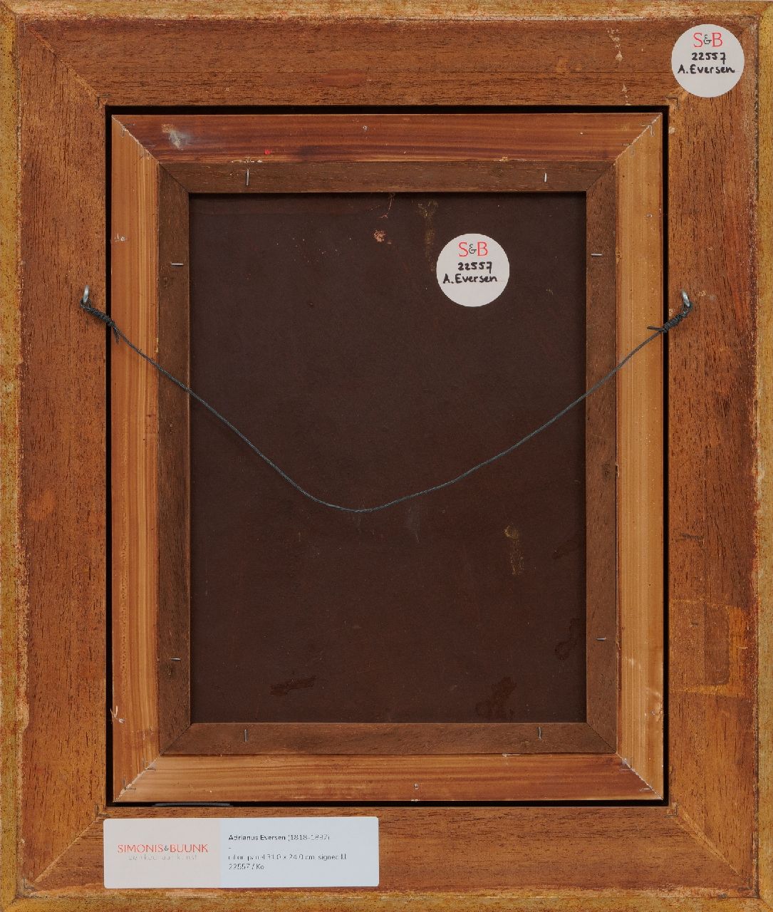 Adrianus Eversen gold als de meest begaafde leerling van de beroemde stadsgezichtenschilder Cornelis Springer. Van zijn leermeester nam Eversen de compositorische opbouw, uitwerking van details en het warme kleurenschema over. In de keuze van zijn onderwerpen was hij echter vrijer. Schilderde Springer vooral 'portretten' van bestaande gebouwen en stadsdelen, Eversen arrangeerde zijn dorpen en straatjes doorgaans zó dat er een fraai stadsbeeld ontstond.