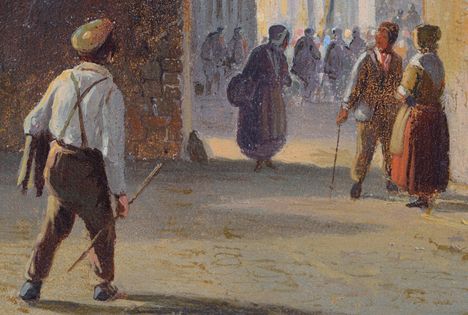 Adrianus Eversen kunstwerk • schilderij • voorheen te koop Zonnig straatje met figuren