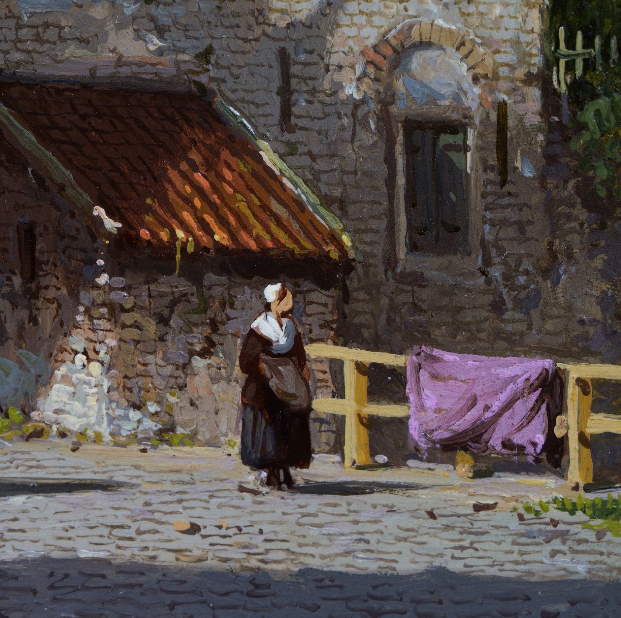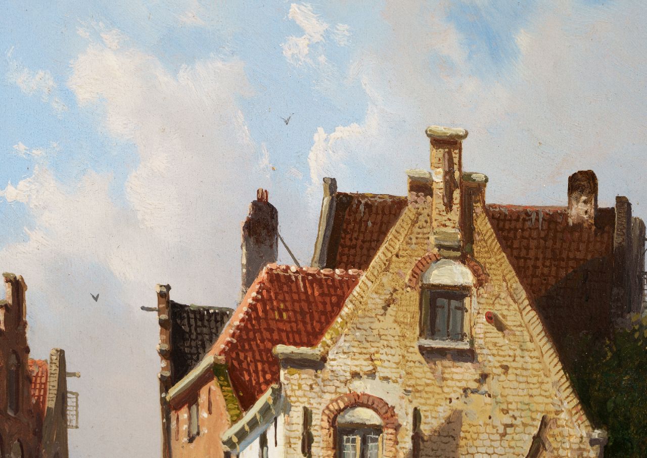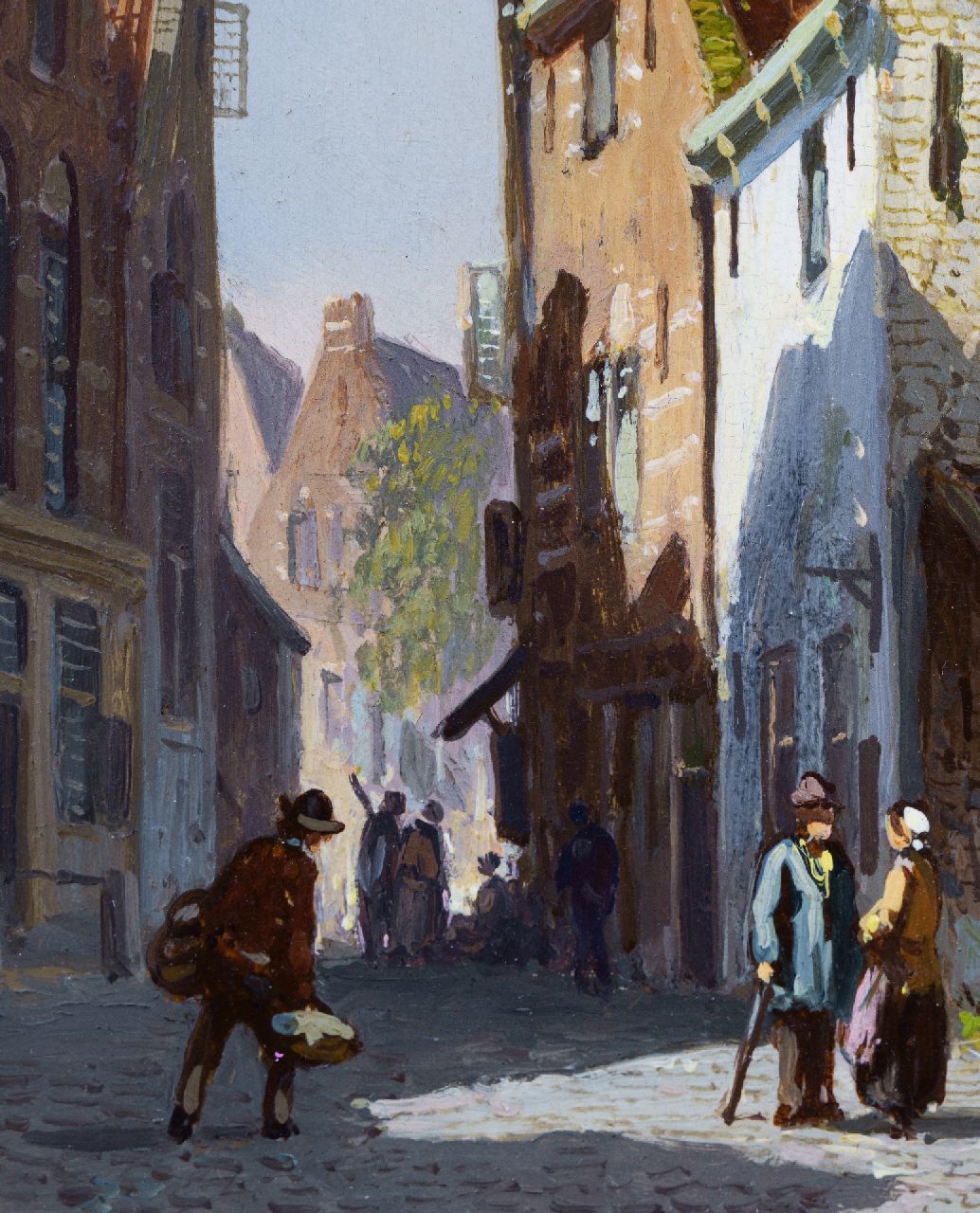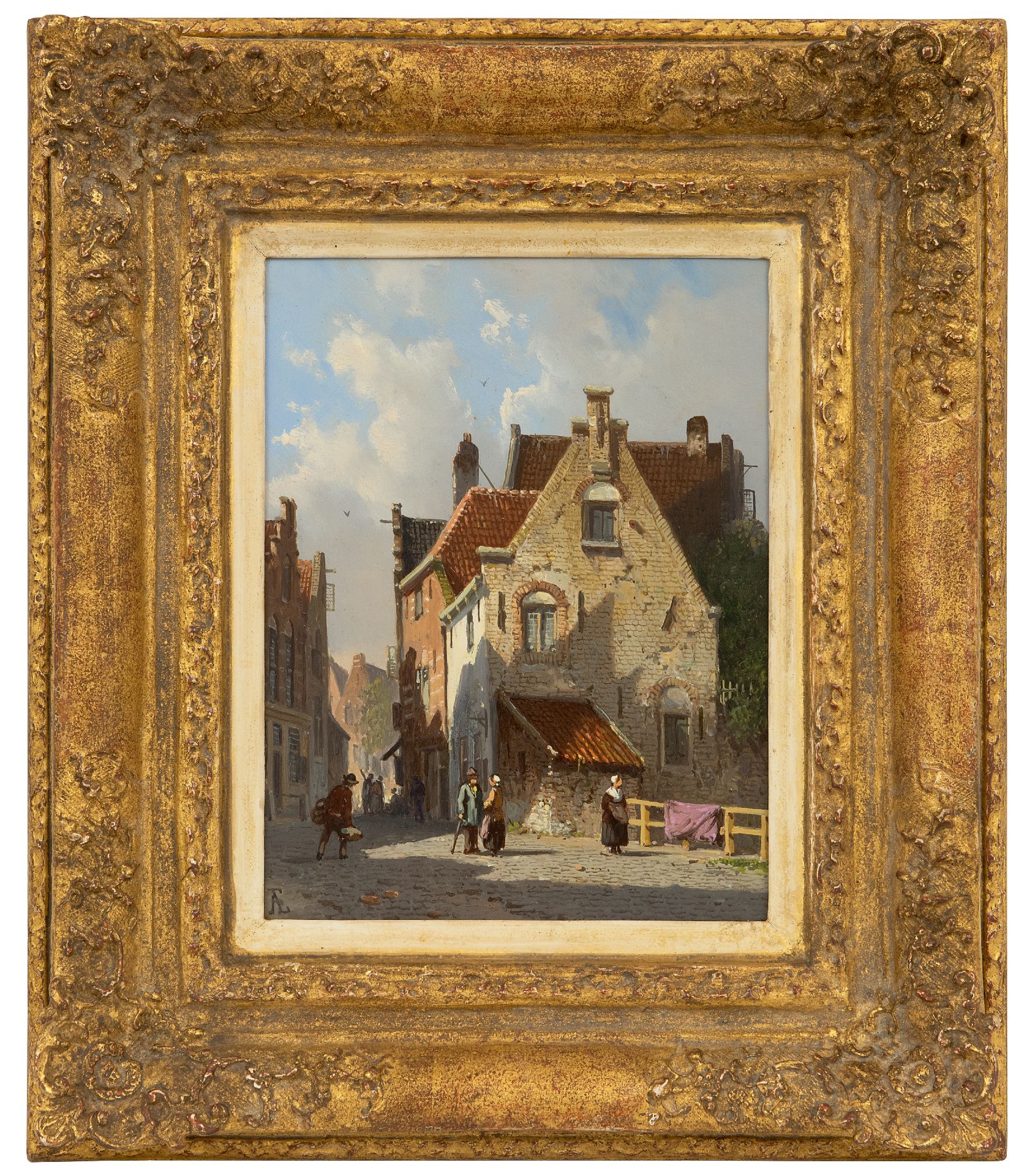 Adrianus Eversen kunstwerk • schilderij • te koop Zonnig straatje met figuren (pendant van winter 18901)